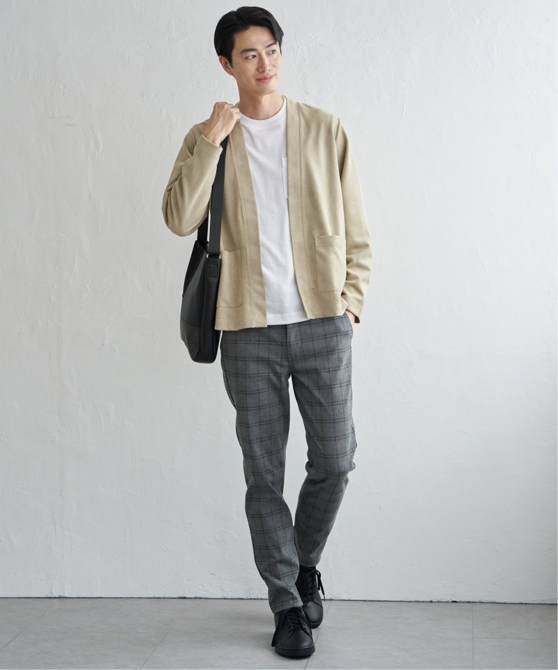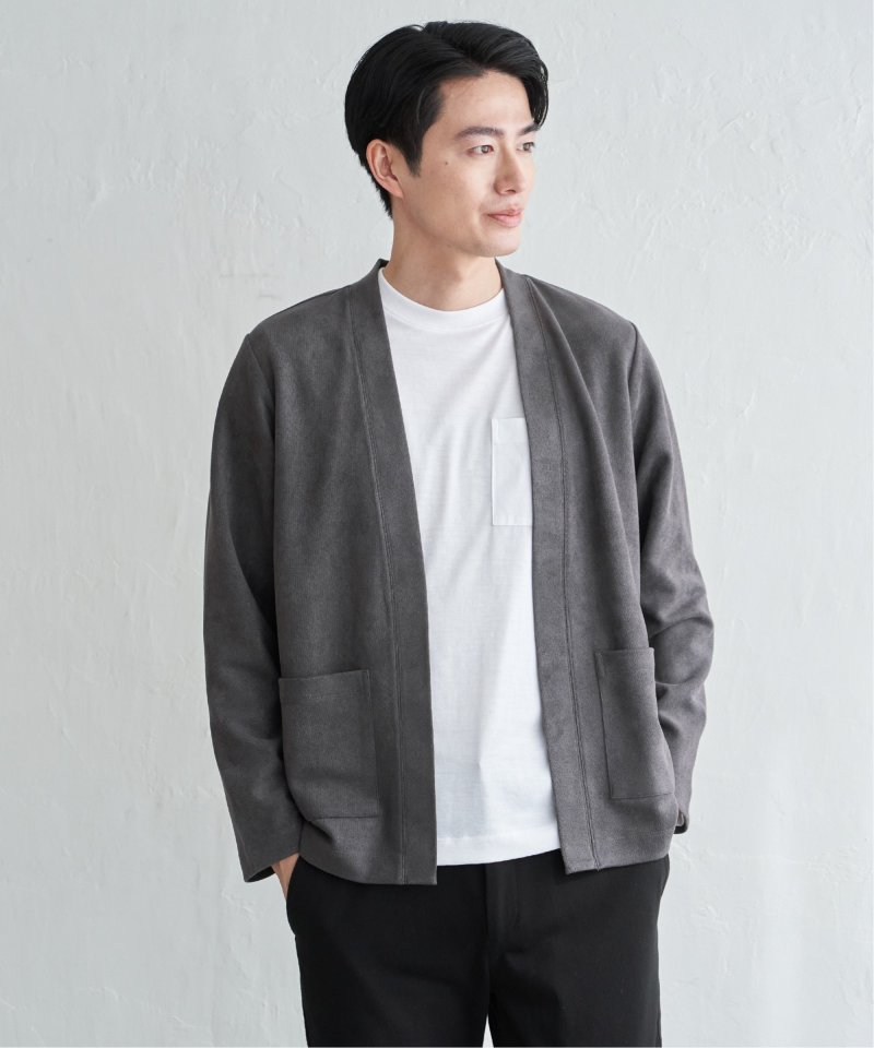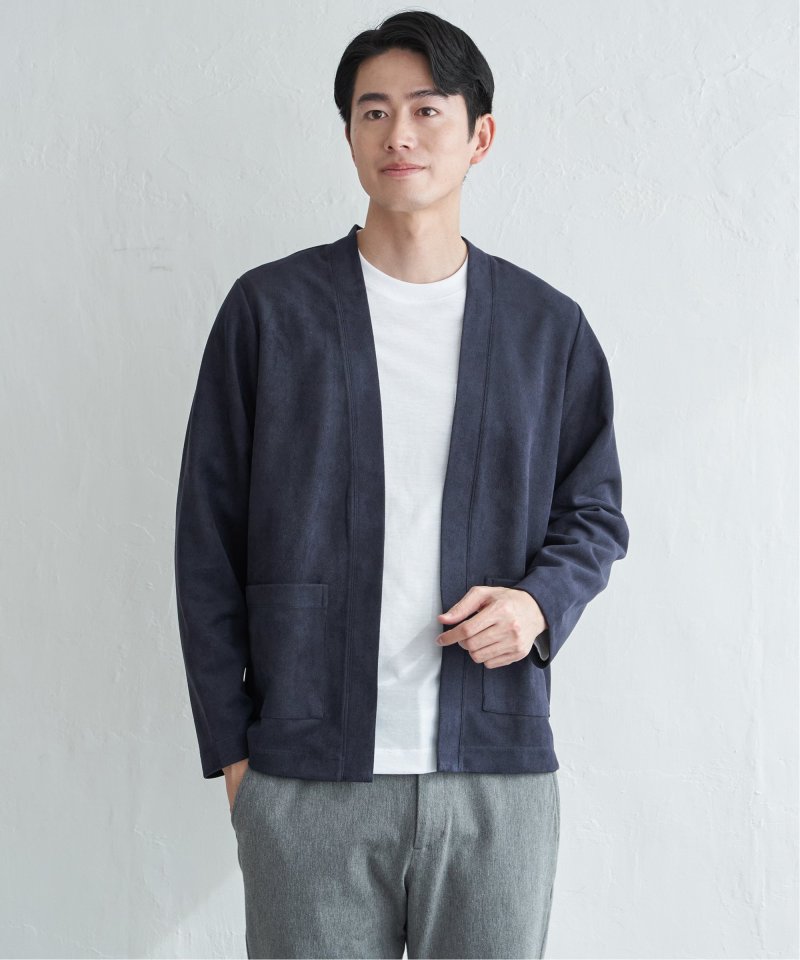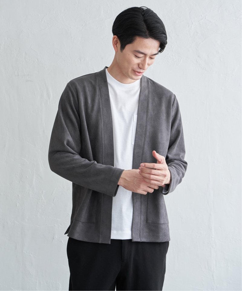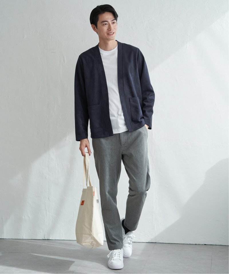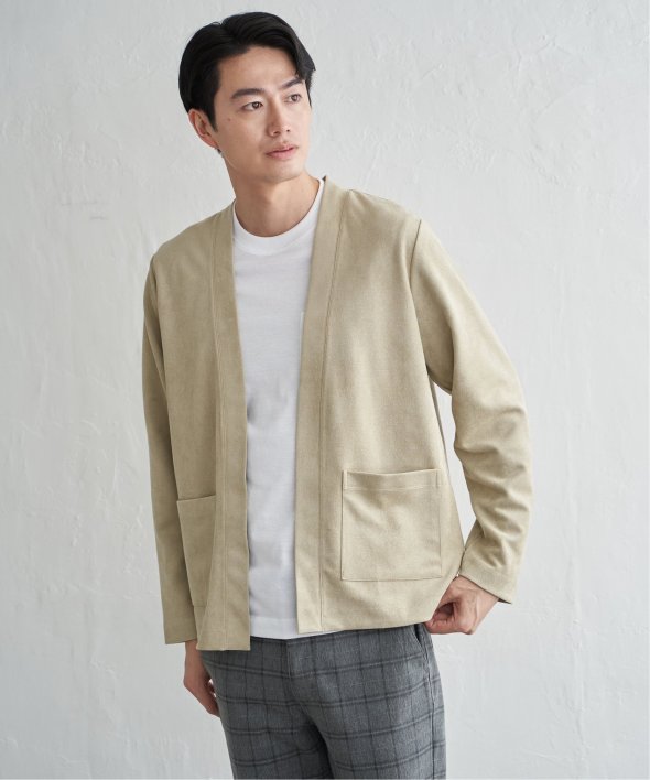 フェイクスエードのカーディガンと、着回し力の高い長袖Tシャツを組み合わせた便利な2点セット。