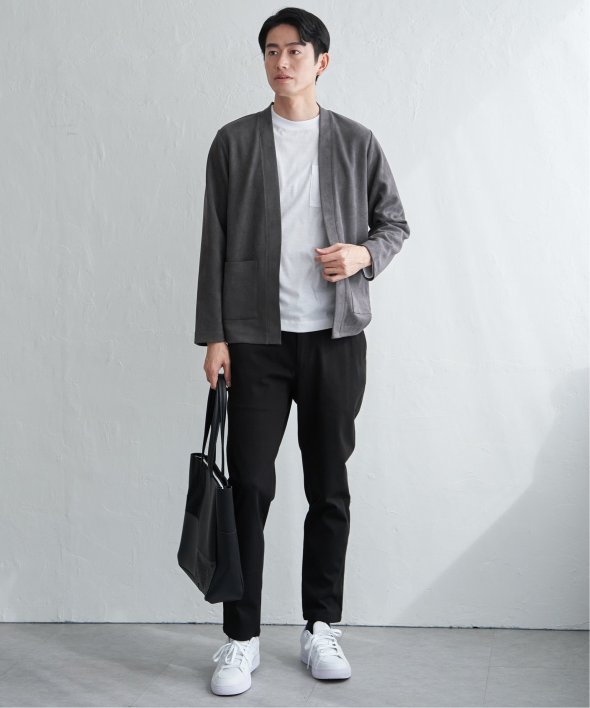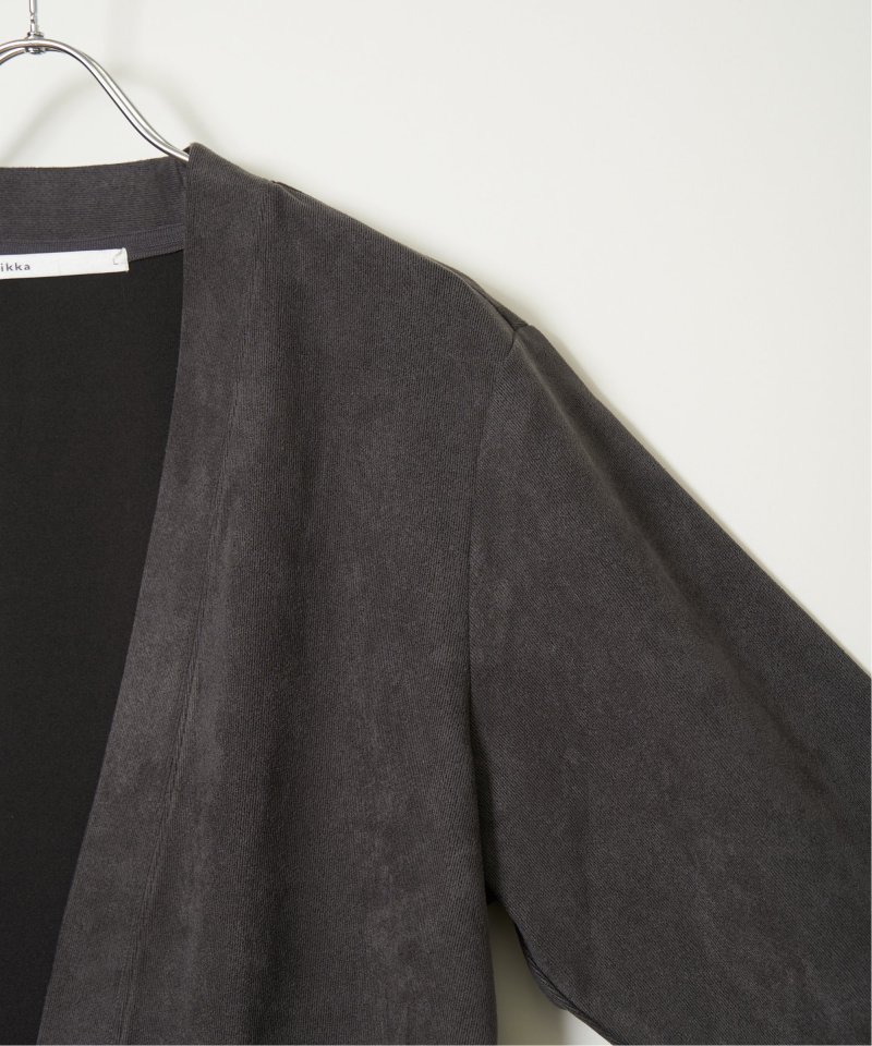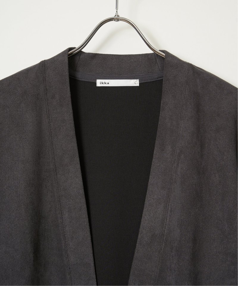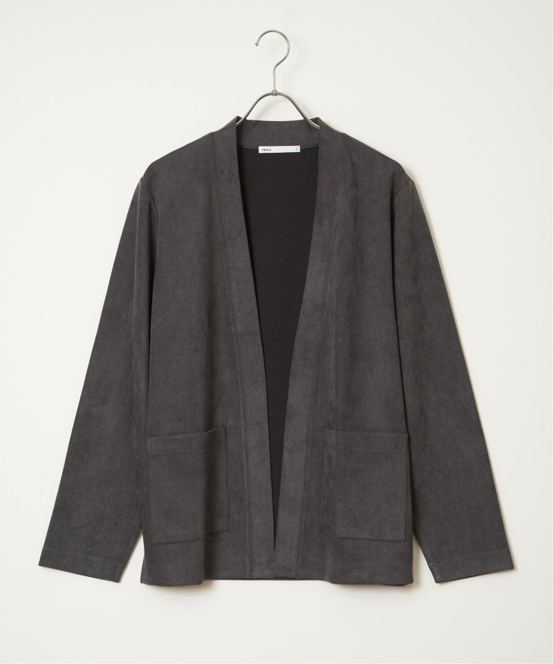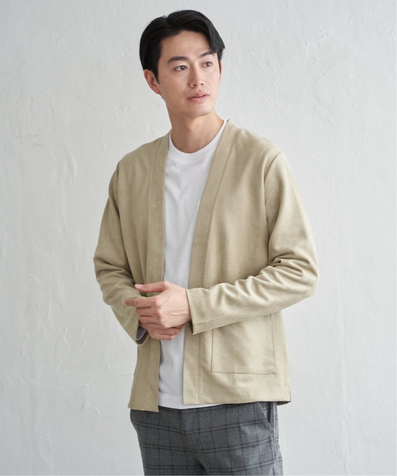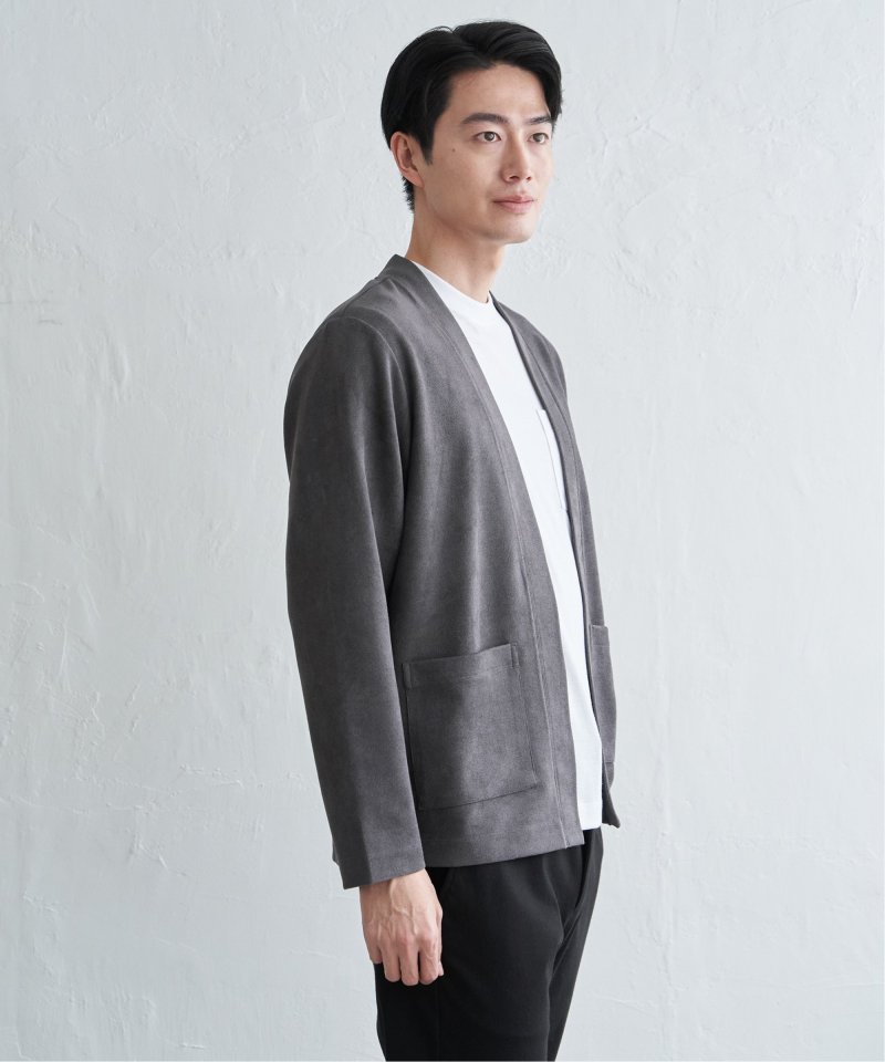 フェイクスエードのカーディガンと、着回し力の高い長袖Tシャツを組み合わせた便利な2点セット。