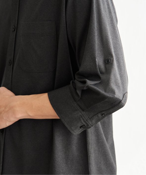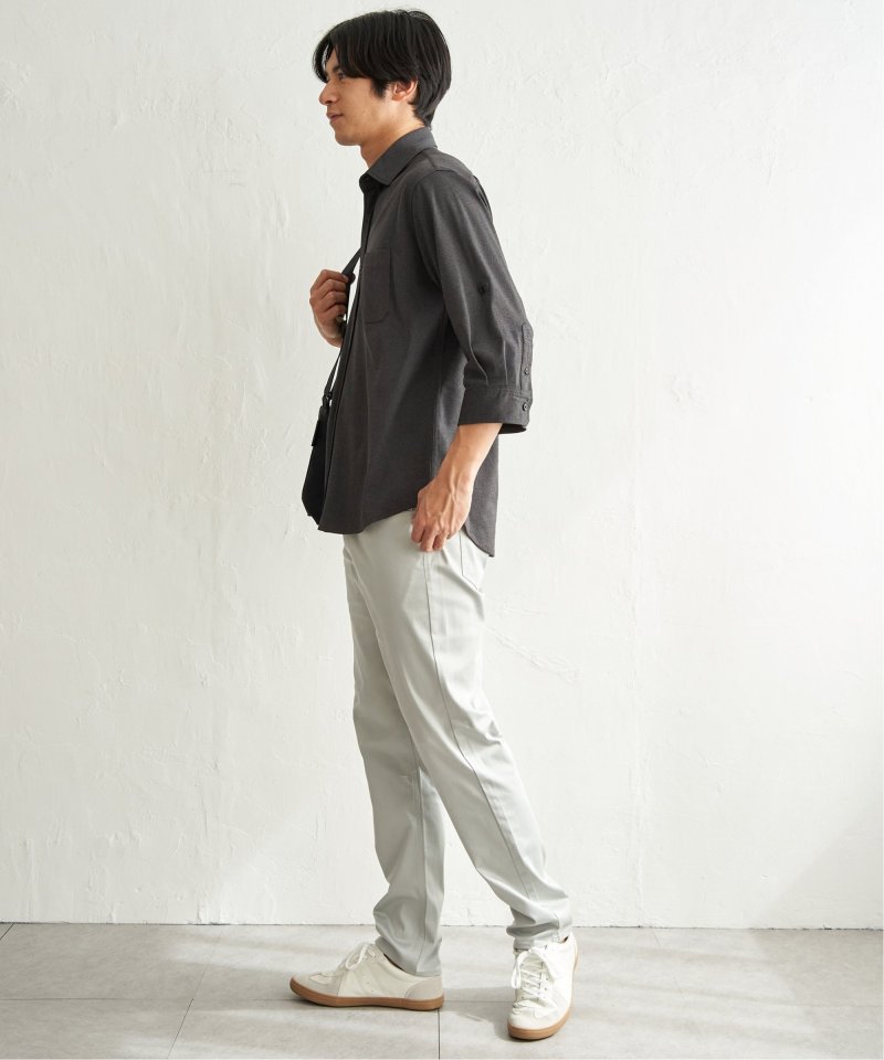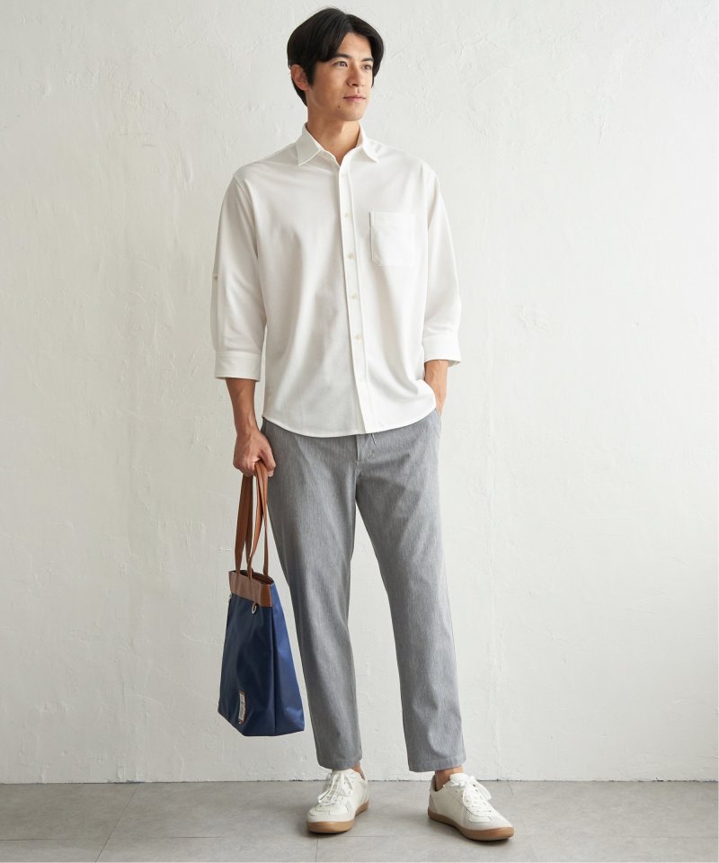 袖のタブを使うことで7分袖から5分袖へと調節でき、気温やスタイルに合わせた着こなしが可能です。