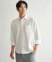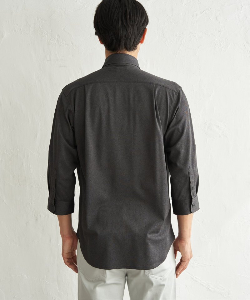 襟型が「ワイド」と「レギュラー」の中間の形をした、スイスカラーのボタンダウン7分袖シャツ。