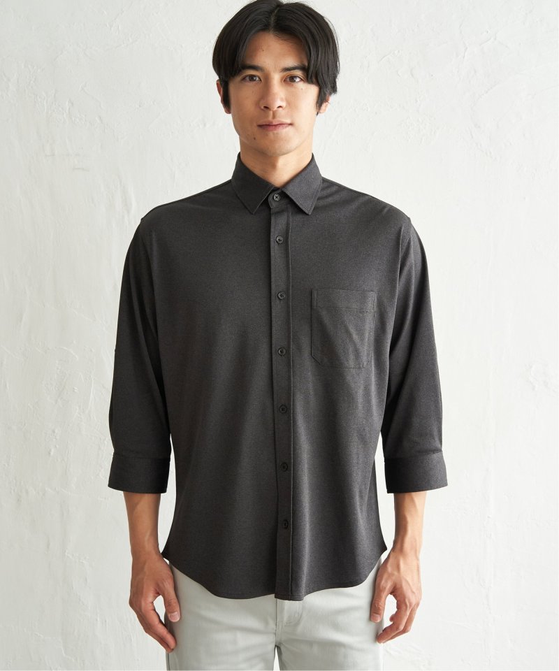 接触冷感と吸水速乾機能を備えた、快適な着心地のスイスカラーシャツ。