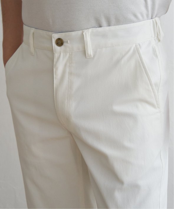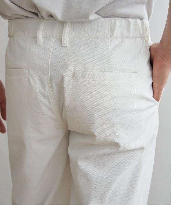 ウエスト前身はすっきりとした見え方で、両脇ゴムのイージー仕様にしているため、履きやすいながらもだらしなく見えないところがポイント。