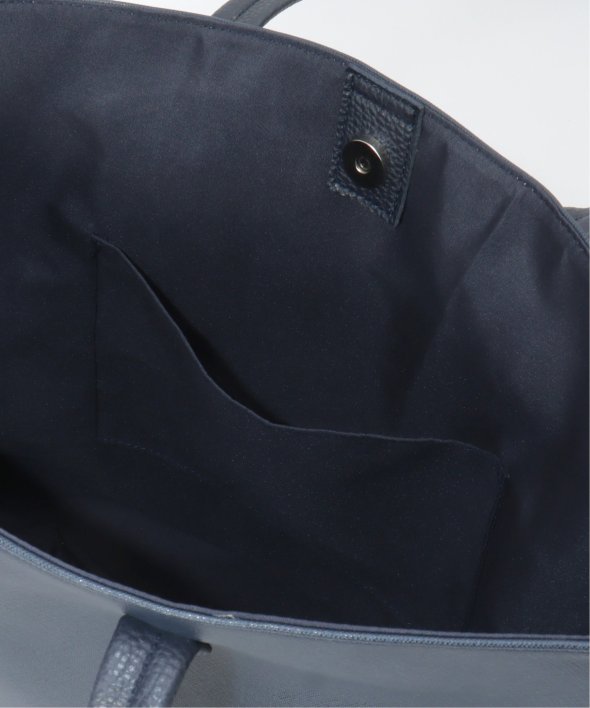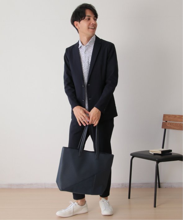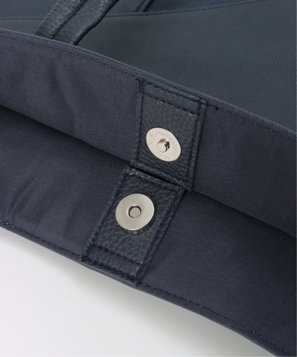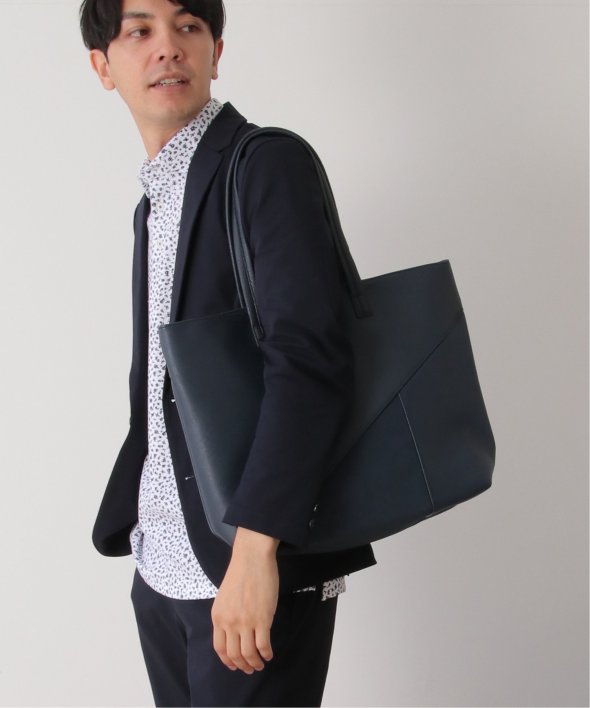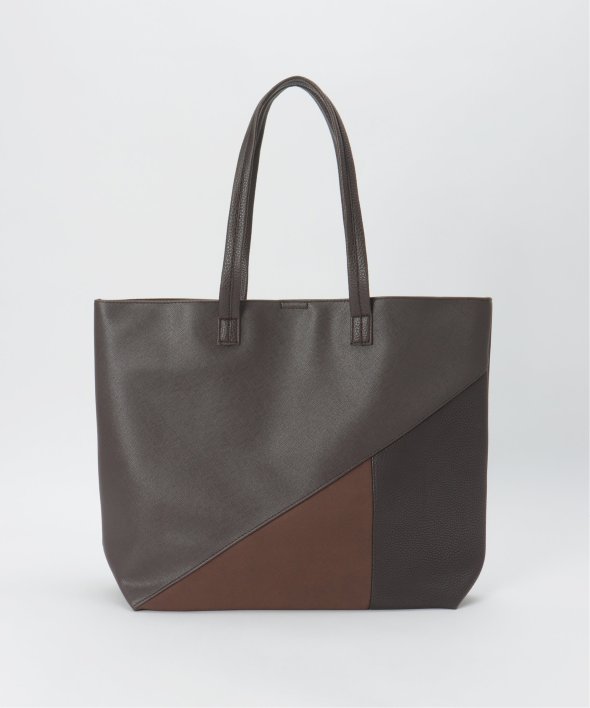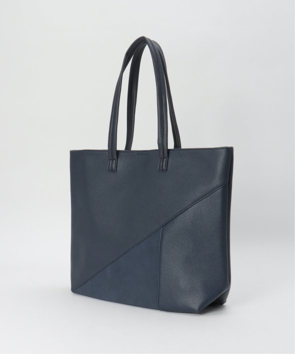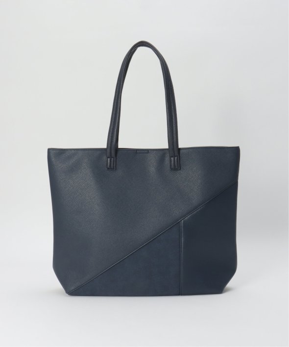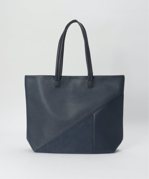 斜めの切り替えと異素材使いで作られたトートバッグ。