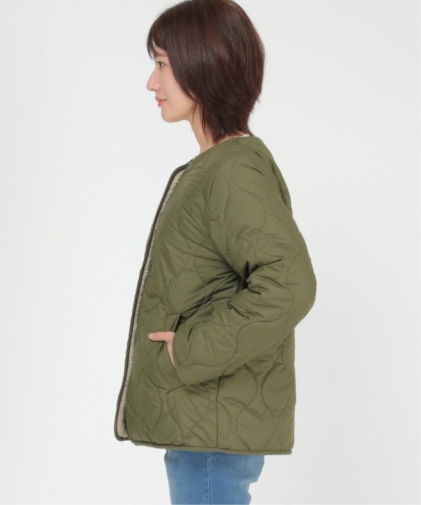 リバーシブル仕様のボアキルトブルゾン。
