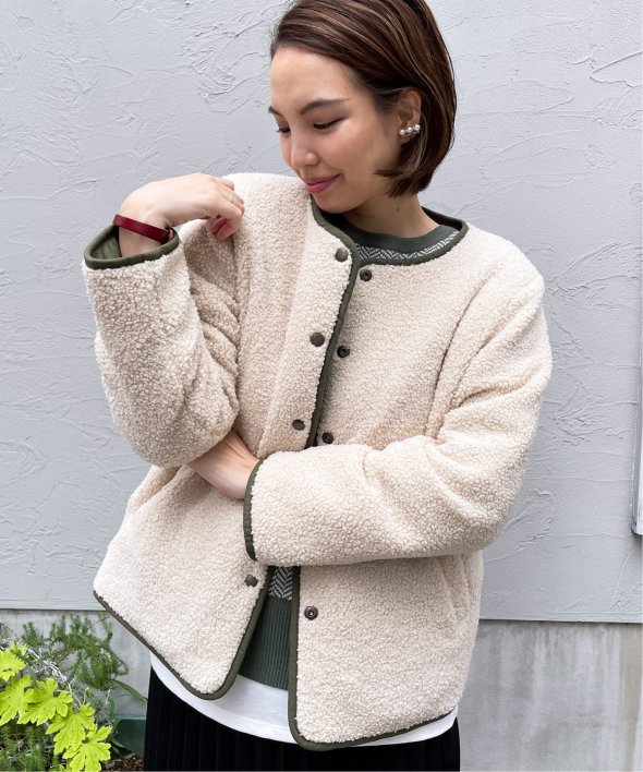 ボアとキルティングのリバーシブル仕立てのブルゾンなので、その日の気分に合わせて使えるのが嬉しいポイント!
