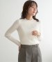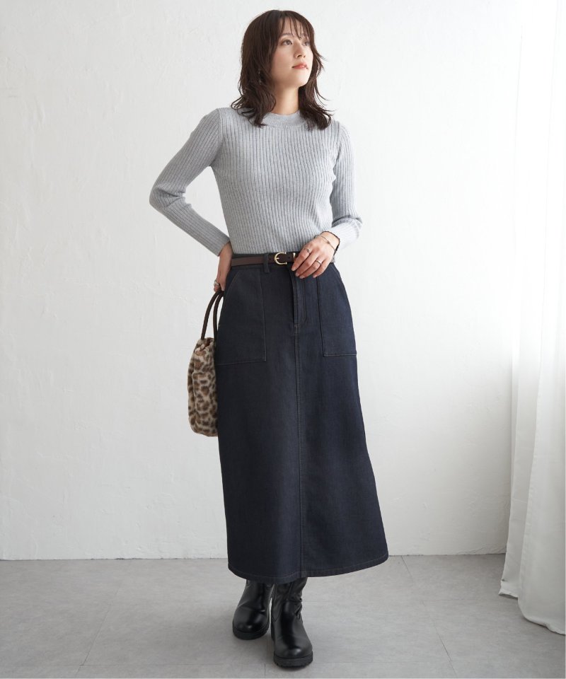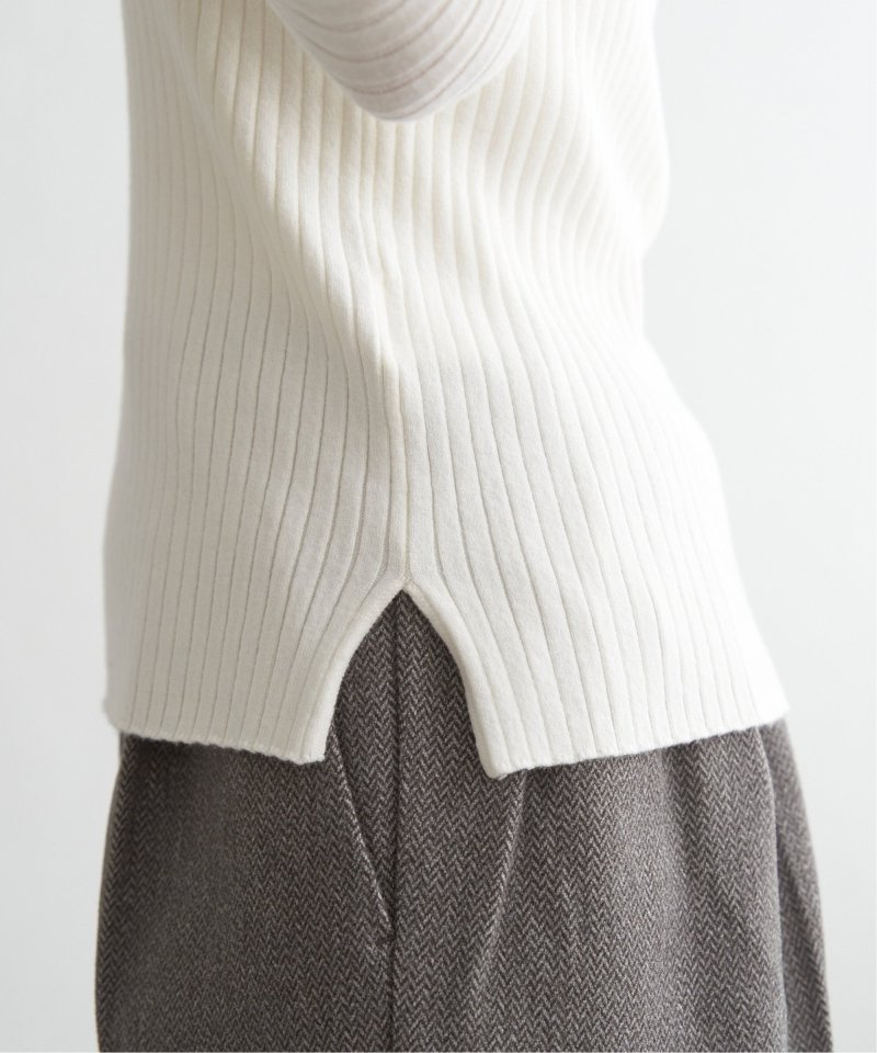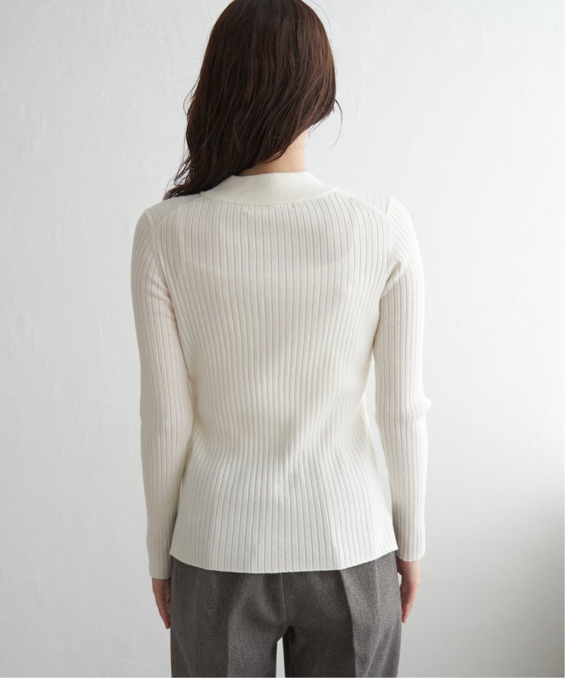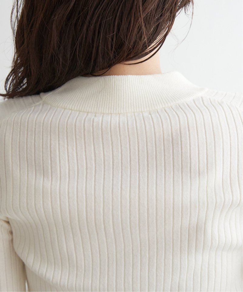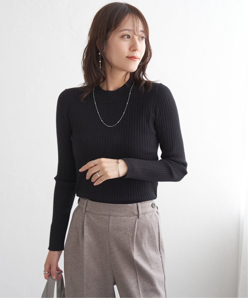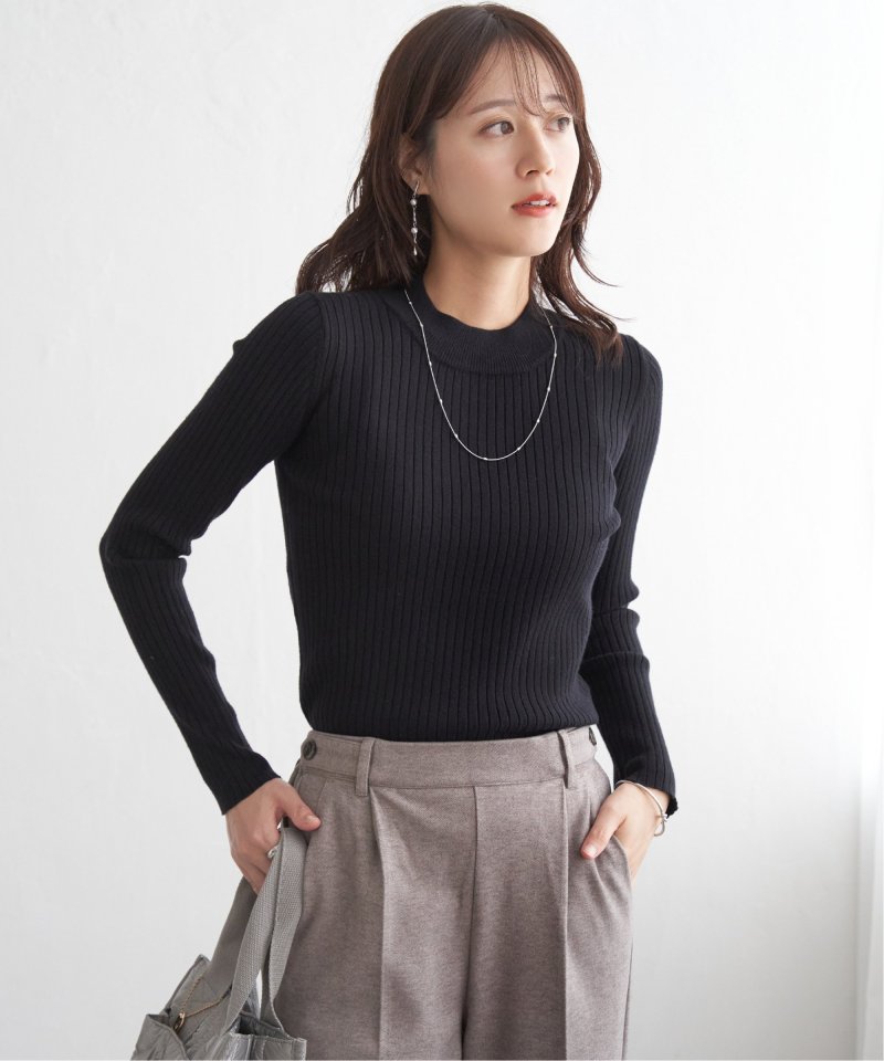 首元をあたたかく包むモックネック衿、インナーに適したコンパクトなサイズ感のリブニットです。