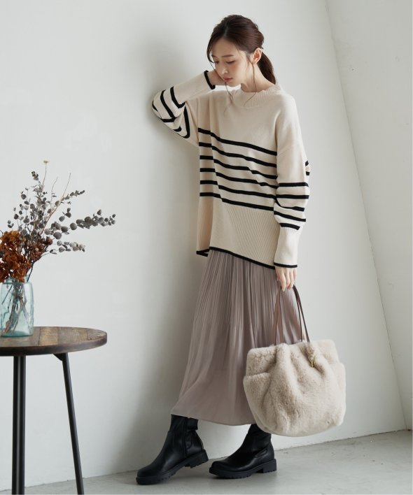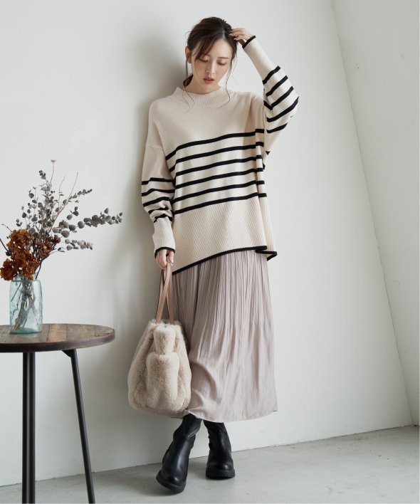 ほどよいハイネック感で、1枚でも主役になりアウターINでもスタイリングのポイントに!