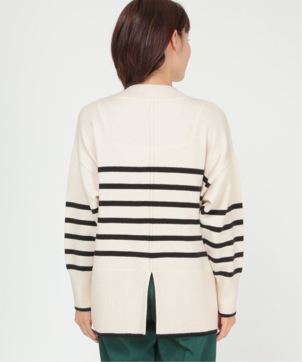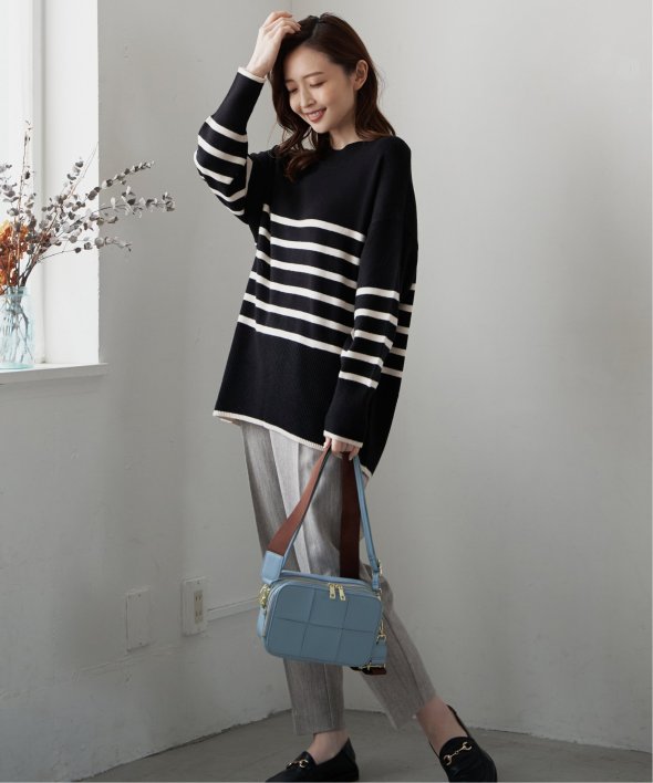 無地部分を多めにデザインした、パネルボーダー柄のニットプルオーバー。