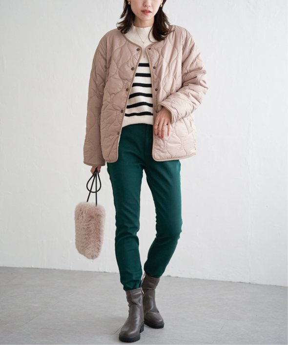 着用したときに着ぶくれ感の少ない厚みにしています。