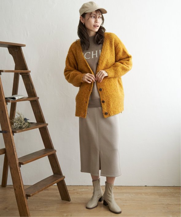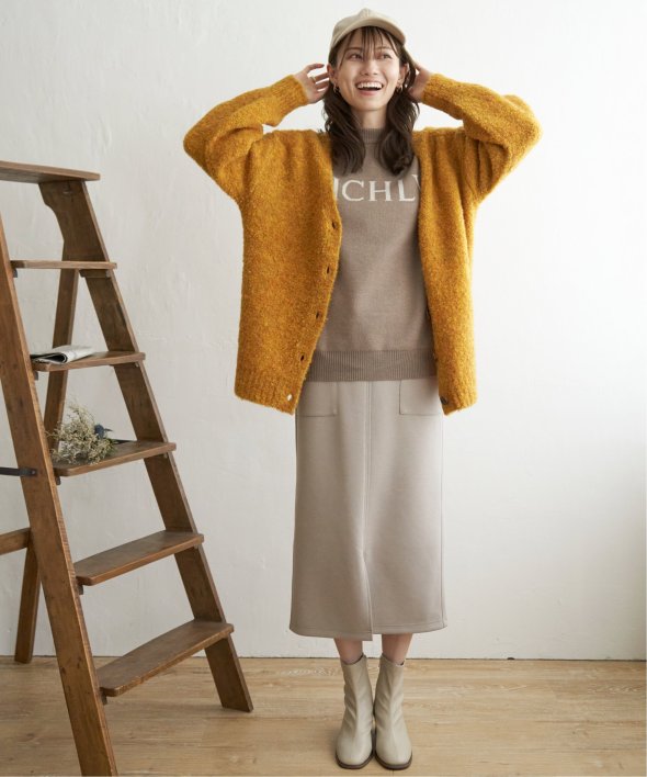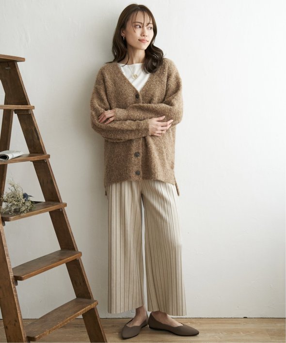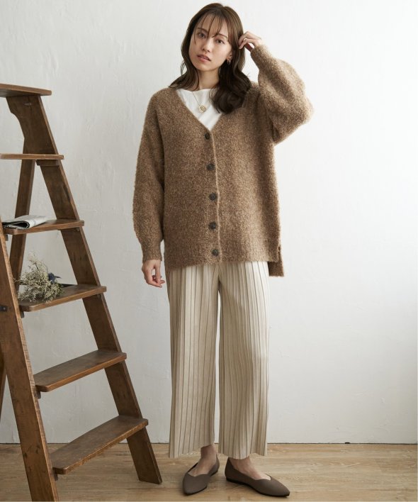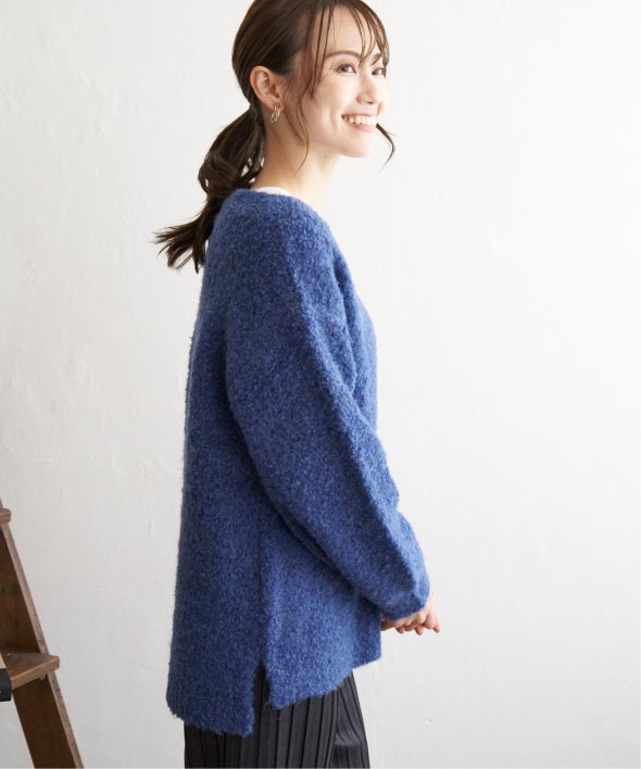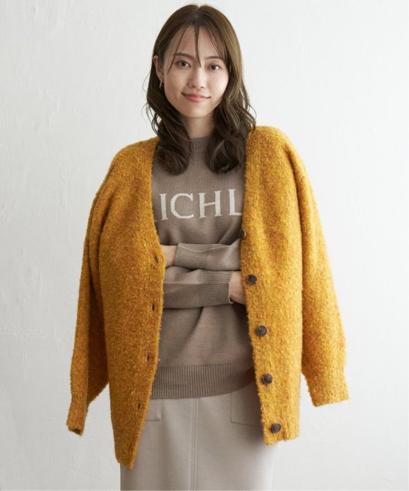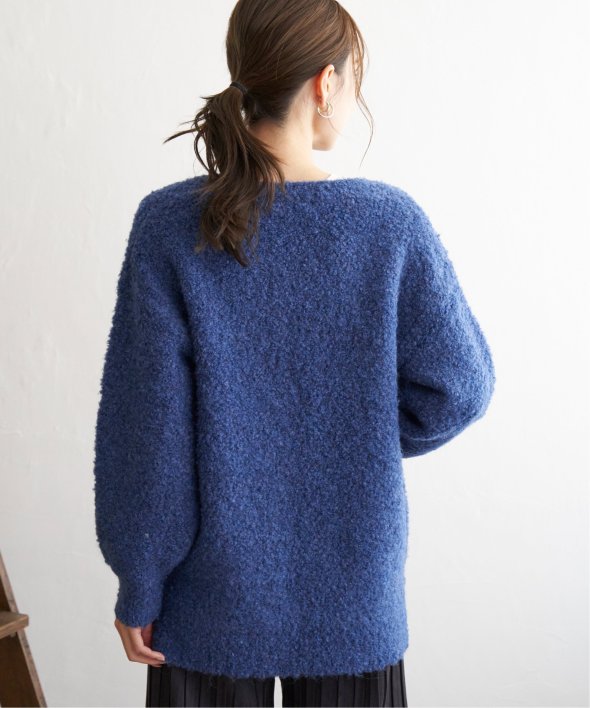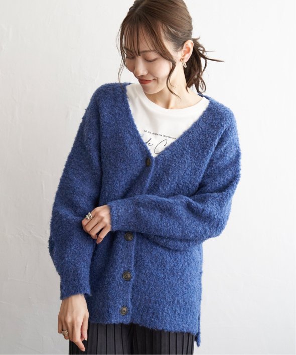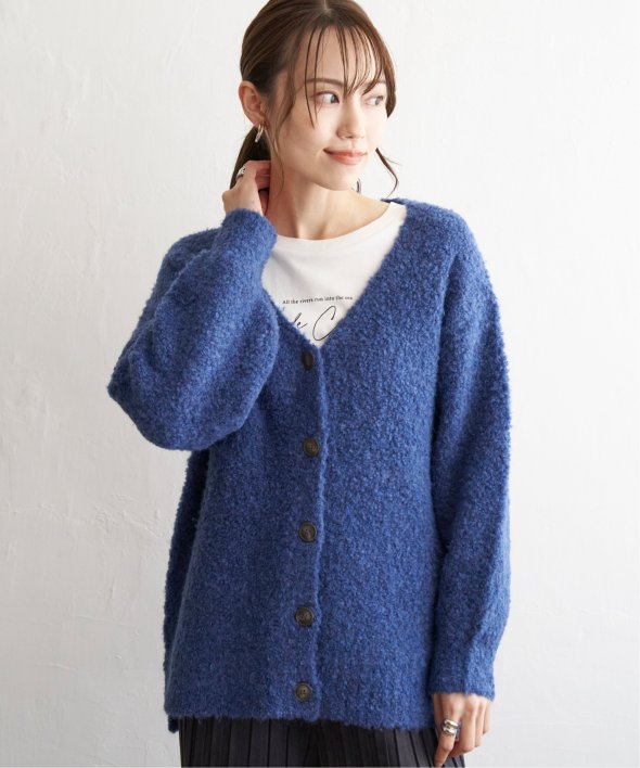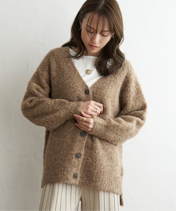 ふわもこ感が愛らしいブークレニットのカーディガン。