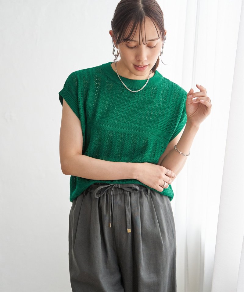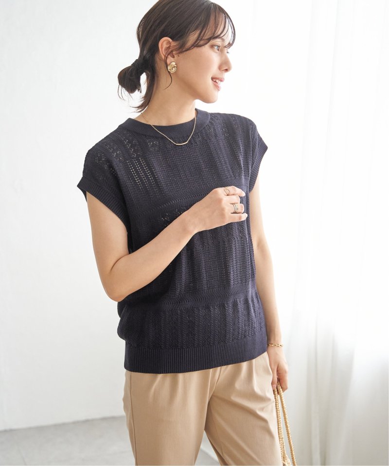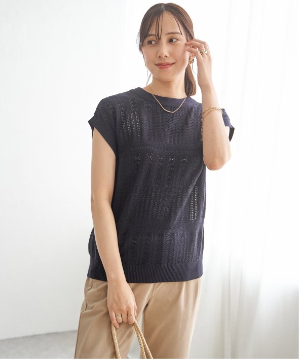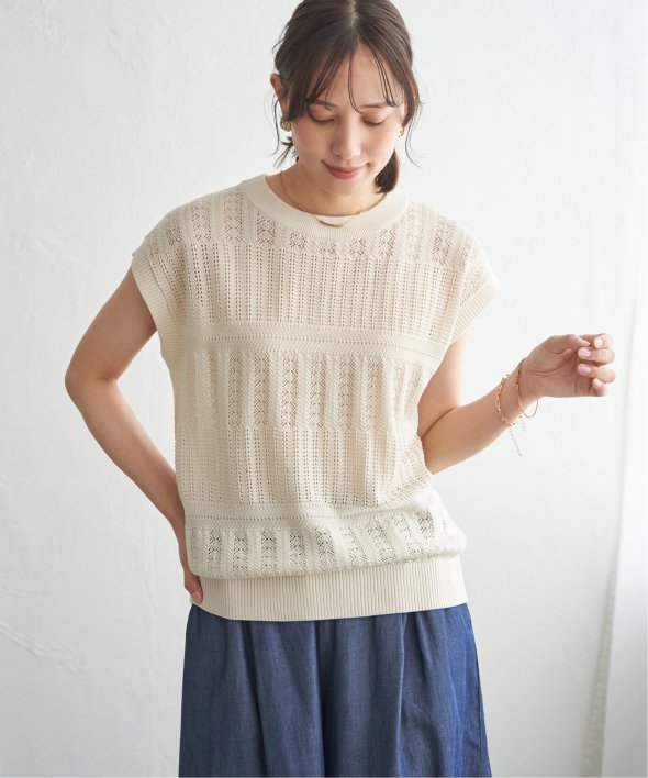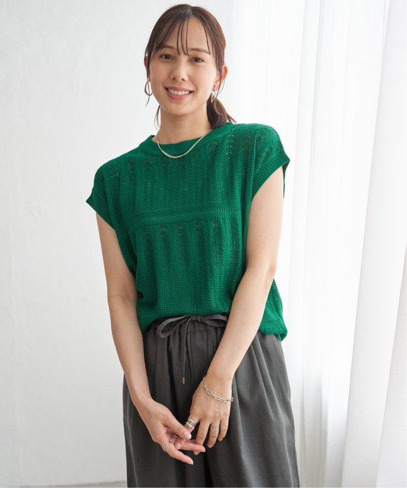 涼しげな透かし編みで表情を付けたニットプルオーバー