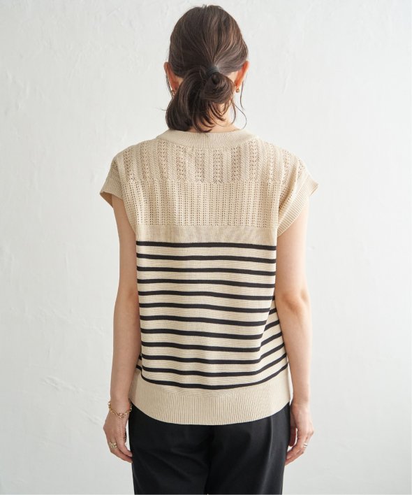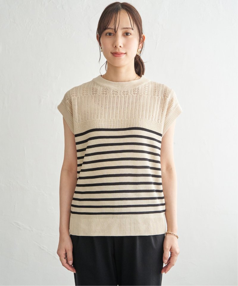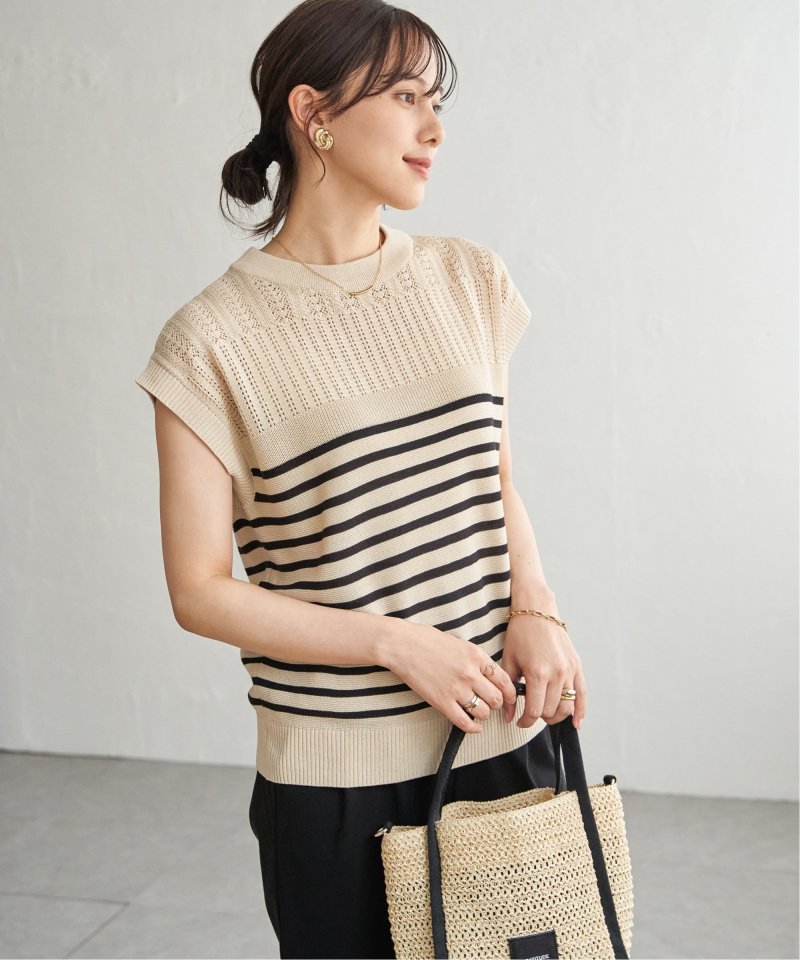 ボーダー柄は肩部分に、単色は全体的に透かし編みを施したデザインで、印象の変わるバリエーションが魅力。