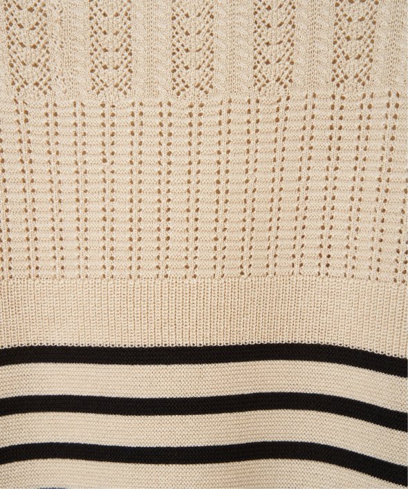 編み地のパターン切り替えで表情のある透かし編みが涼しげなプルオーバーニット。