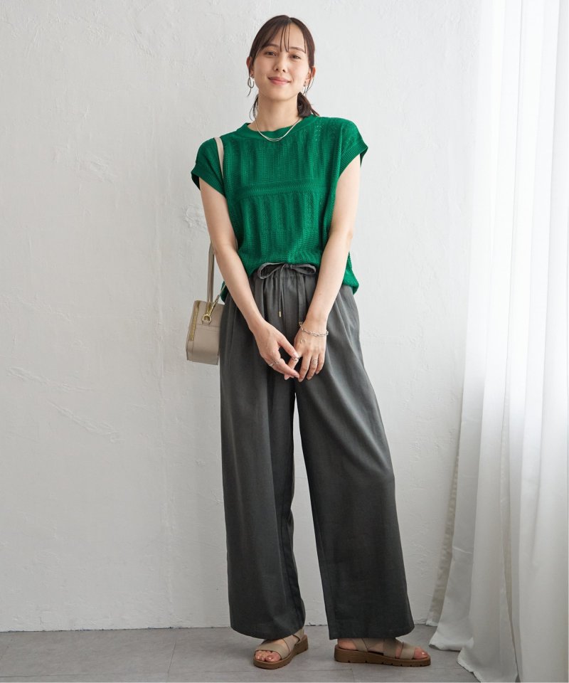 ・暑い時期にも着やすく、さりげない肌見せスタイルが楽しめます。