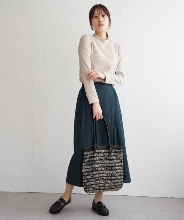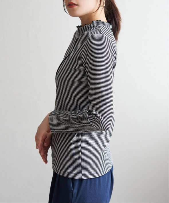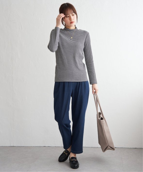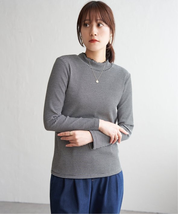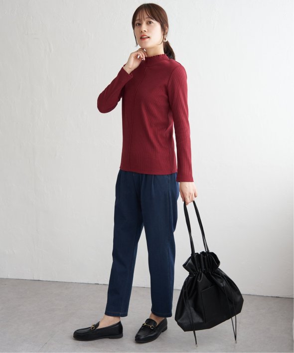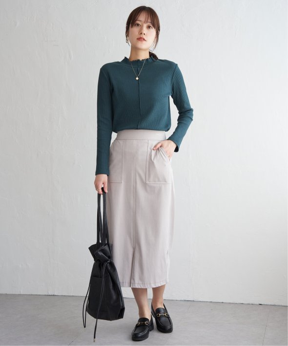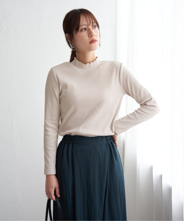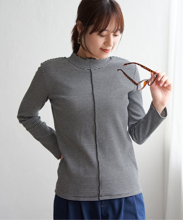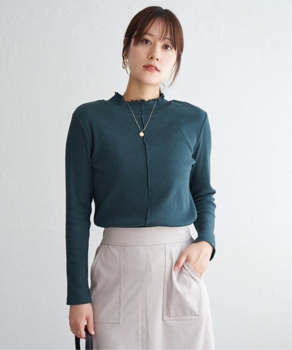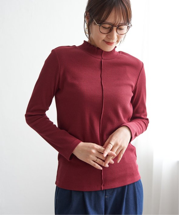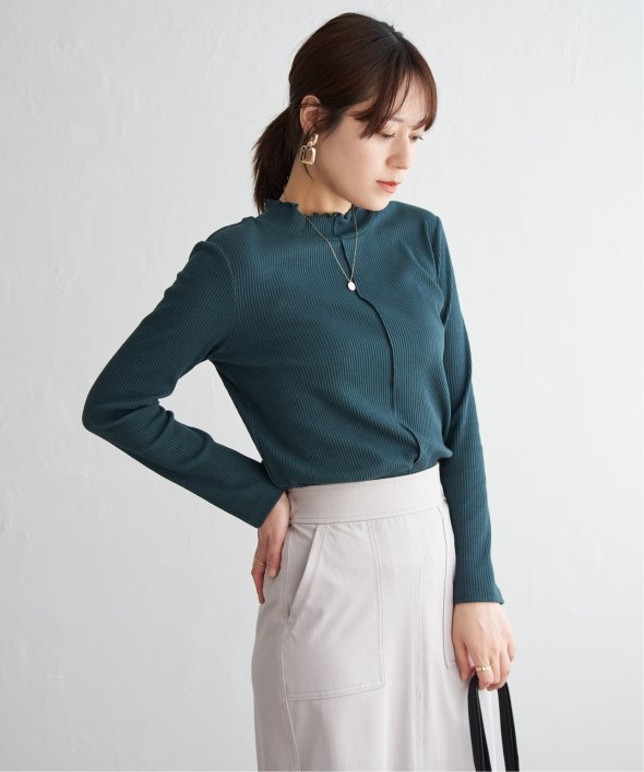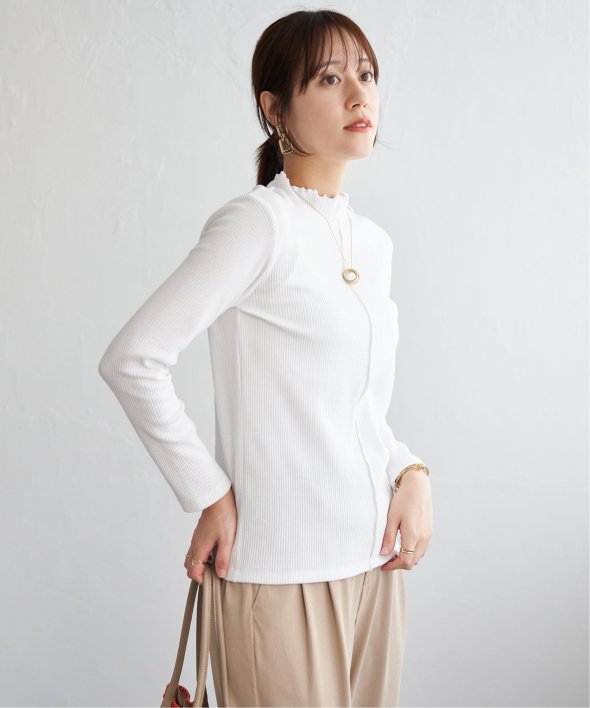 表情のあるテレコ素材を使用した、前後2WAYで楽しめるハイネックプルオーバー。フロント切り替えのアクセントが効いており、一枚でも重ね着でもサマになるデザインです。コンパクトなサイズ感とほどよいフィット感で、ジャンスカやキャミワンピのインナーとしても◎気分やコーデに合わせて前後を変えて楽しめる、着回し力抜群のアイテムです。 [洗濯方法]洗濯の際はネットを使用してください