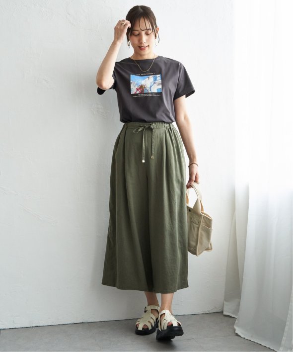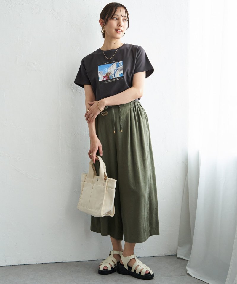 カーデのインナーとしても使えるTシャツです。
