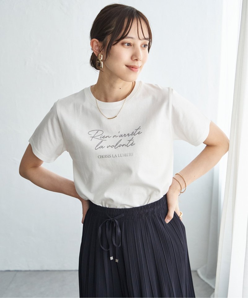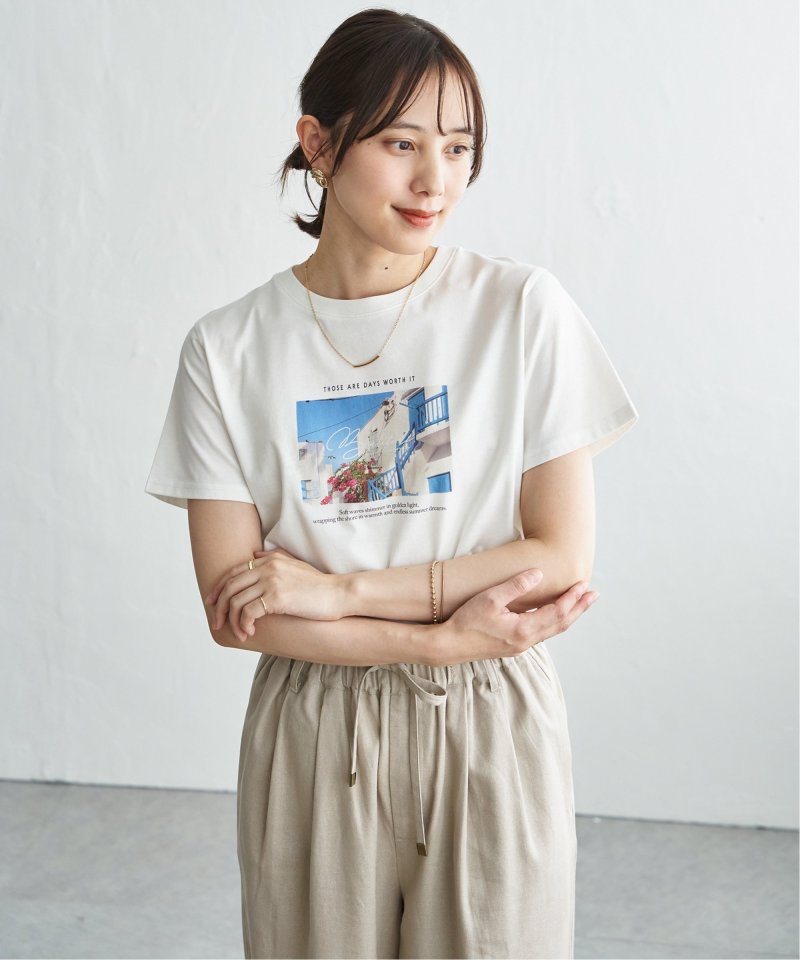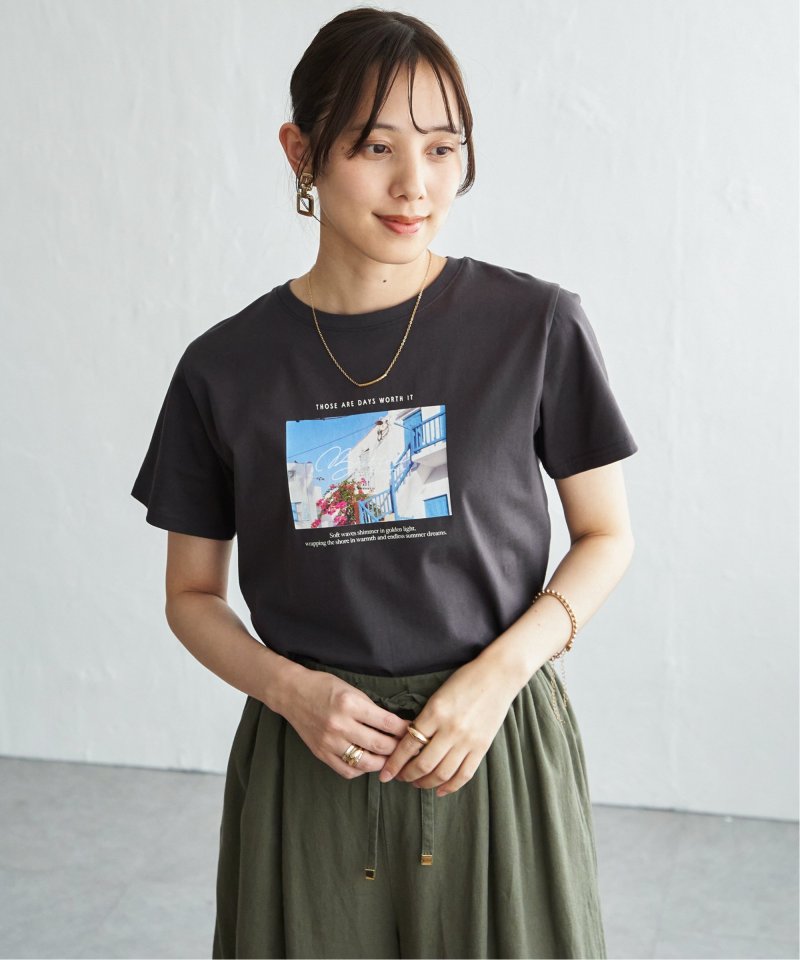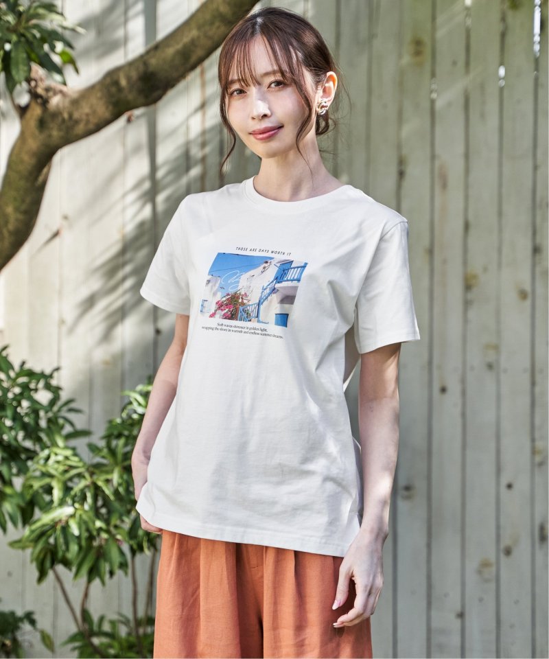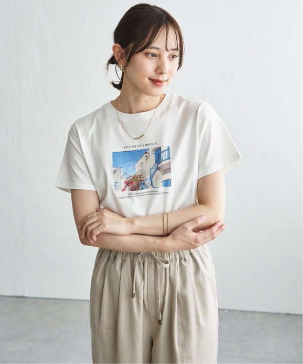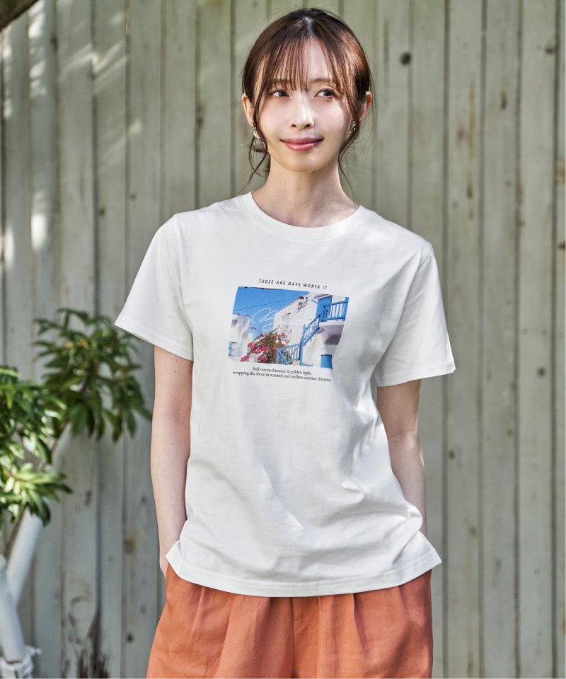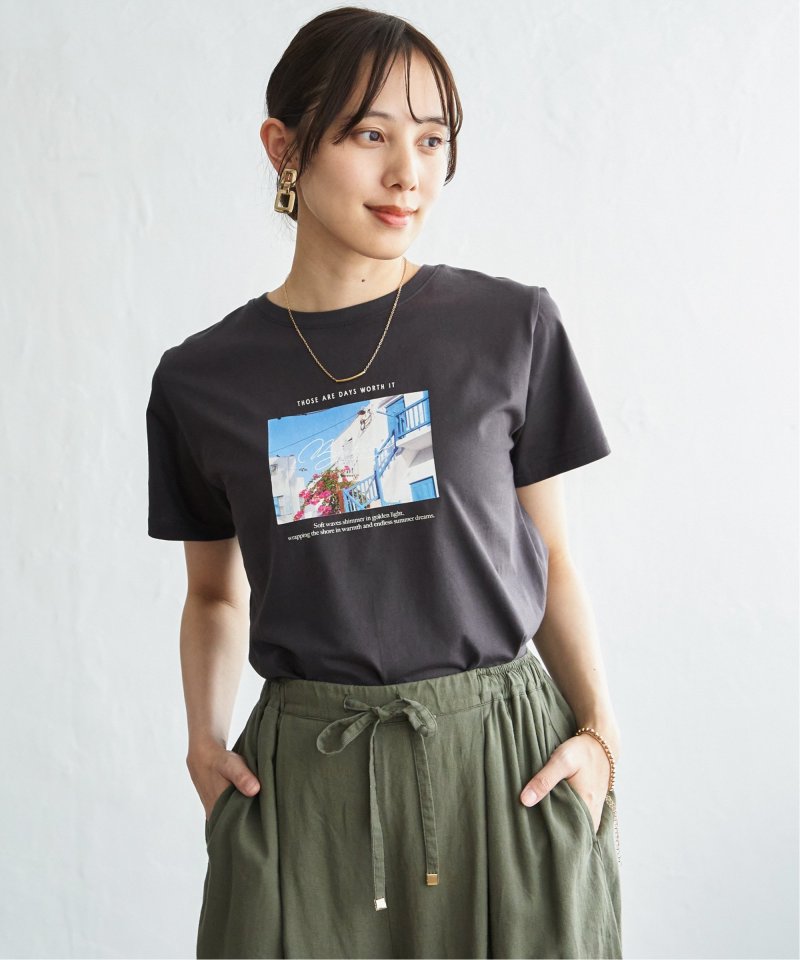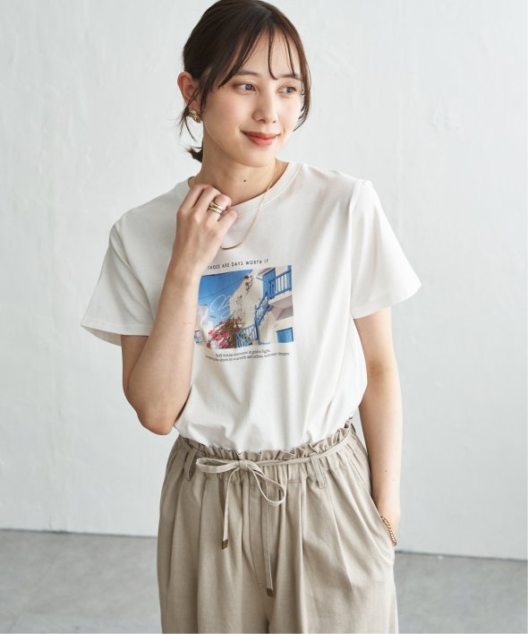 きれいめな印象で着られるカットソー素材を使用したロゴフォトプリントTシャツ。