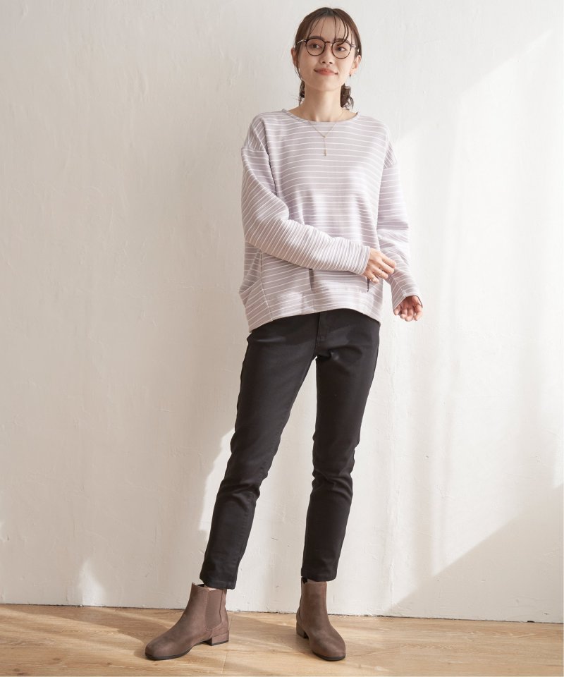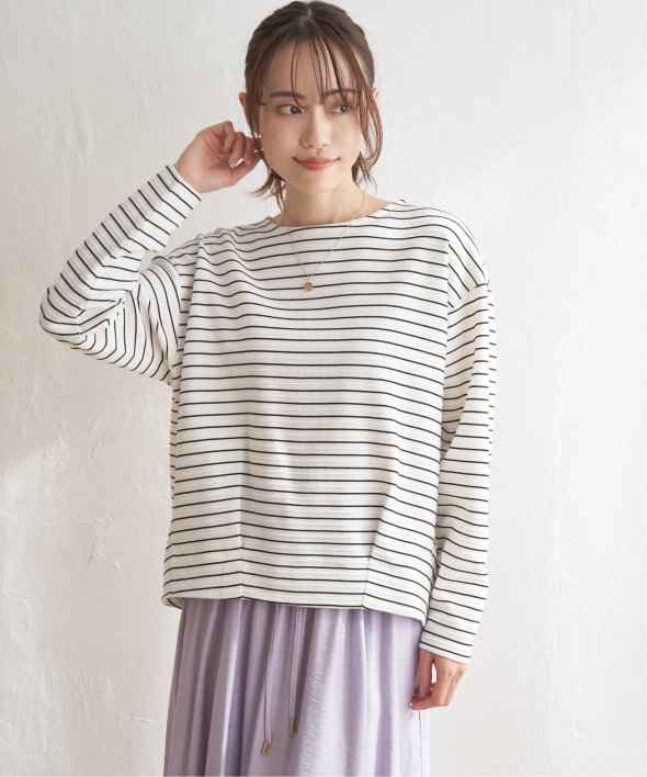 ボートネックが首元をきれいに見せてくれます。