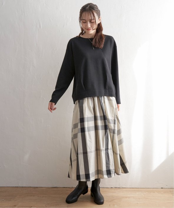 トップスインしなくても決まる、裾タック入りのプルオーバー。