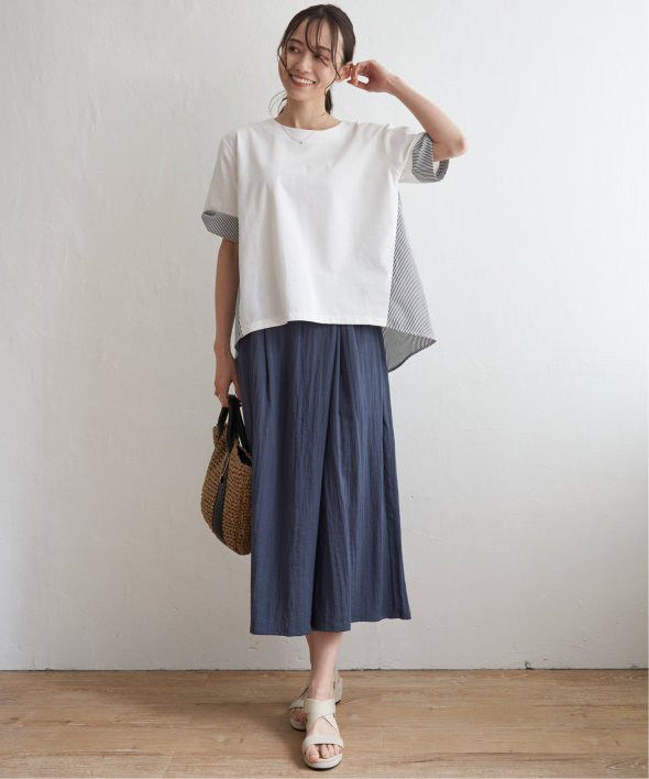 前後差のある着丈のため、トレンドのワイドパンツともバランス良くコーディネートしていただけます。