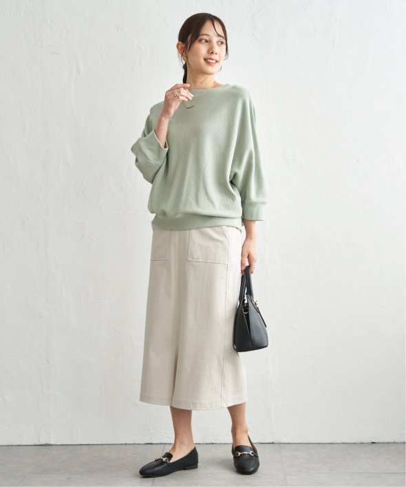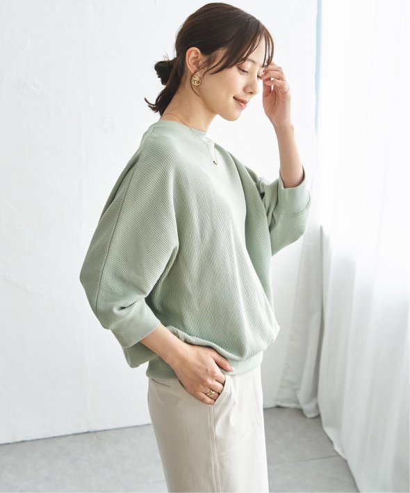 ゆとりのあるドルマンシルエットが自然に体のラインを包み込み、気負わず着られる一枚です。