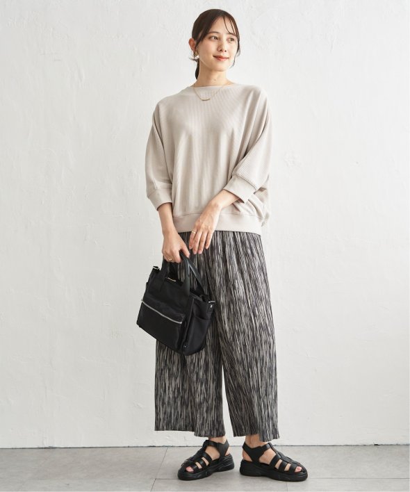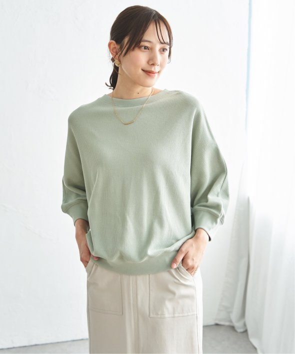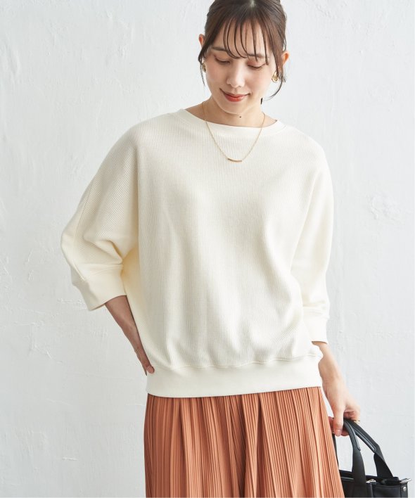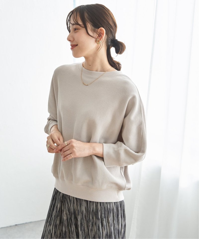 立体感のある編地が特徴の畔ニットソー素材を使用したタックフライスドルマンプルオーバー。