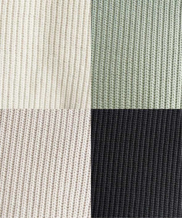 立体的な編地の畔ニットソーを使用。