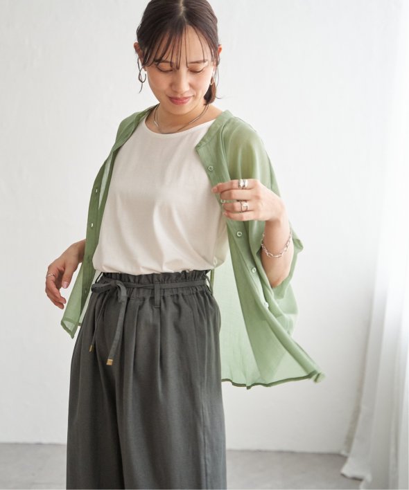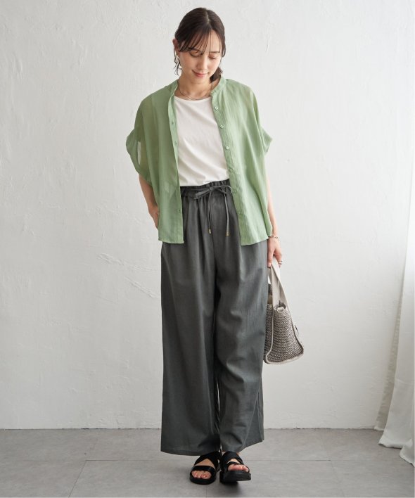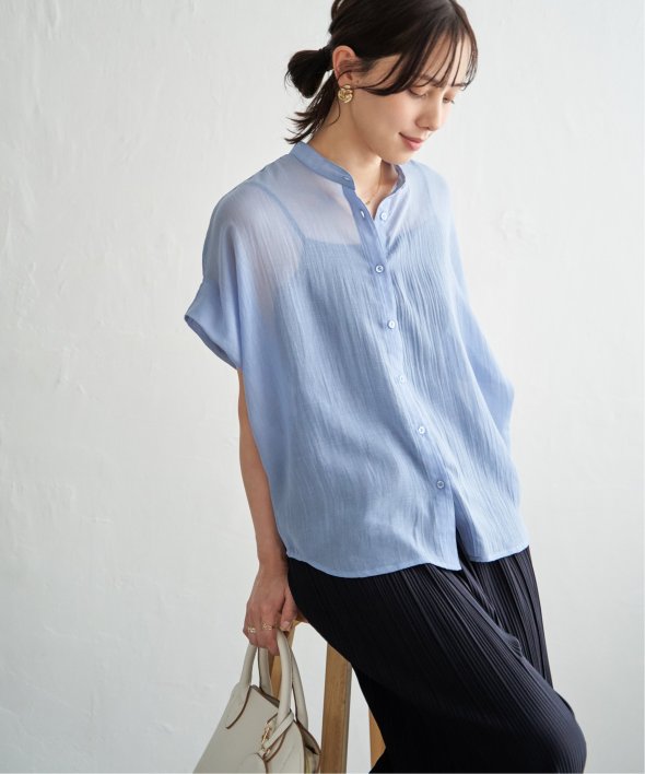 羽織りでも使いやすいバンドカラーでコーディネートの幅が広がるアイテムです。