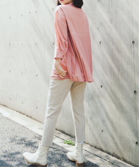 前はシンプルだけど、後ろがバックプリーツになっているので、コーデが苦手な方にも挑戦しやすいアイテムとなっています。
