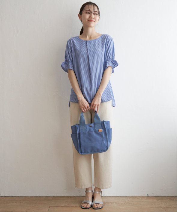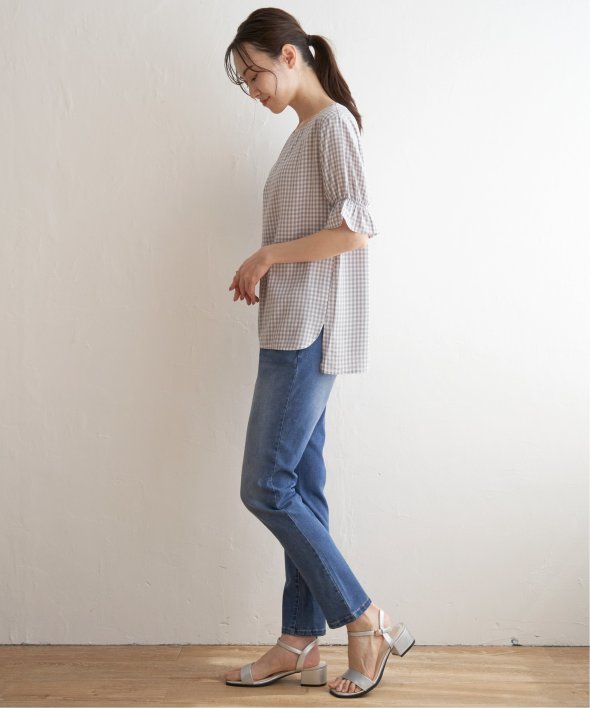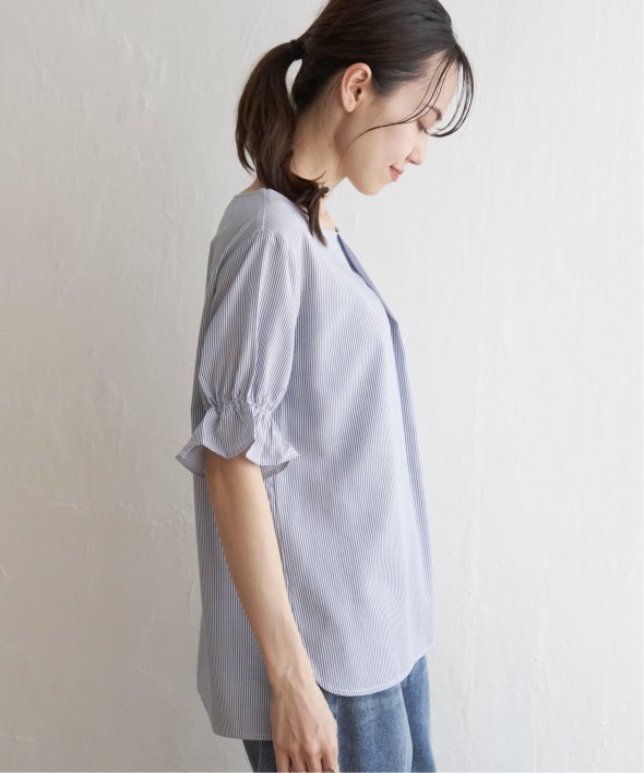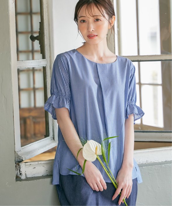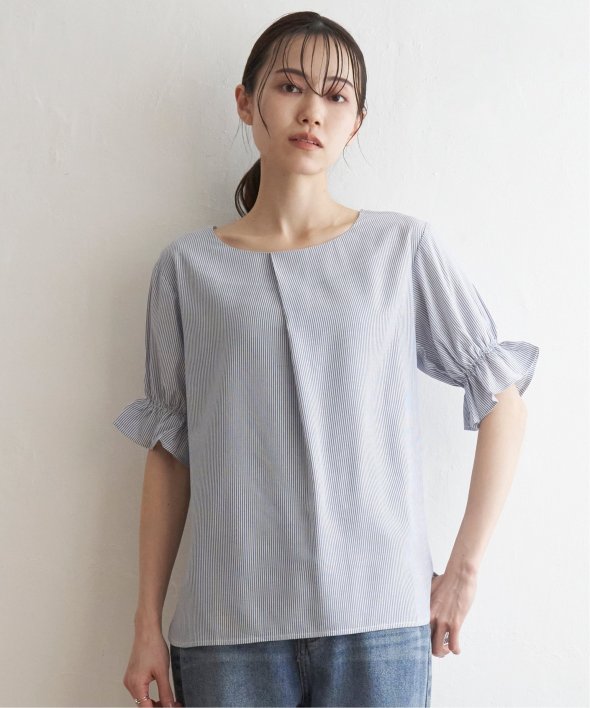 袖のギャザーやフロントタックなど、上品なフェミニンさが魅力のブラウス。