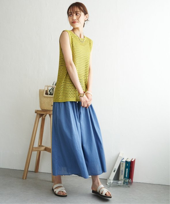 たっぷりギャザーが入った、スカートのようなワイドパンツです。