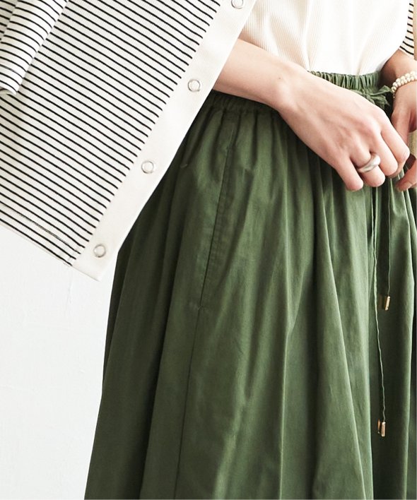 ウエストは総ゴムで紐が入っている為、小柄な方にもおすすめなリラックスな履き心地。