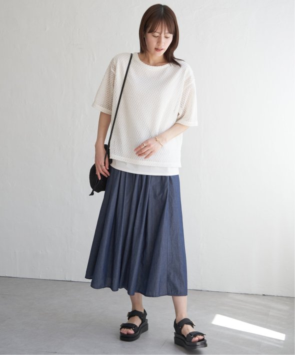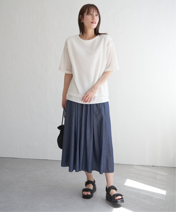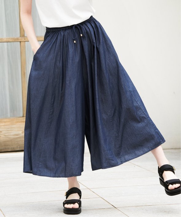 【雑誌InRed(宝島社)6月号掲載】コットン素材のボリューム感たっぷりなスカーチョ。ペチパンツがついており、透ける心配なしで安心して着用できます。ゆったりとしたシルエットが歩くたびにふんわりと広がり、動きが美しく映えます。たっぷり生地使いが贅沢な華やぎボトム。【素材】綿100%で通気性が良く、程よい張り感と軽やかさが楽しめる涼し気なコットン素材。ナチュラル感がありながら表面感はさらりと綺麗なタッチです。【デザイン】ボリュームフレアシルエットが可愛いスカート風ワイドパンツは、ウエストのドロストリボンとゴールドパーツといった細かいデザインポイントを施すことで高級感をプラス。足さばきの良いミモレ丈で、総ゴムのウエストでお気軽にご着用いただけます。裏地はペチコートにリニューアルしました。【ikkaポイント】風になびくスカートのようなワイドパンツで軽やかに纏う素材感とシルエットが特徴的。シンプルなデザインながらもボリュームのあるふんわり感がコーデの主役になります。この時期にマストバイな、お出かけが楽しくなるボトムです。【おすすめコーディネート】キッズサイズも展開しているため、親子おそろいでコーディネート可能です。・デニム風ボリュームスカーチョ(120~160cm) 品番 13260393■スタッフ着用コメント160cm/ネイビーブルー/Mサイズ春先から真夏に向けて、涼し気なボトムを探していました。このスカーチョはコットンのやさしい素材感が魅力的で、派手すぎないのに自然な華やかさがあり一目ぼれ。知的な印象のあるネイビーは、きちんと感があるので特別なおでかけにもよく履いています。足元をパンプスやスニーカーといろいろ変えるだけで雰囲気や印象も異なるので、コーデ合わせを楽しめます。親子お揃い、親子おそろい、親子リンク[洗濯方法]洗濯の際はネットを使用してください