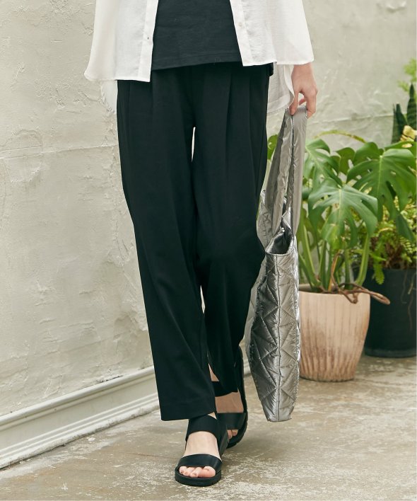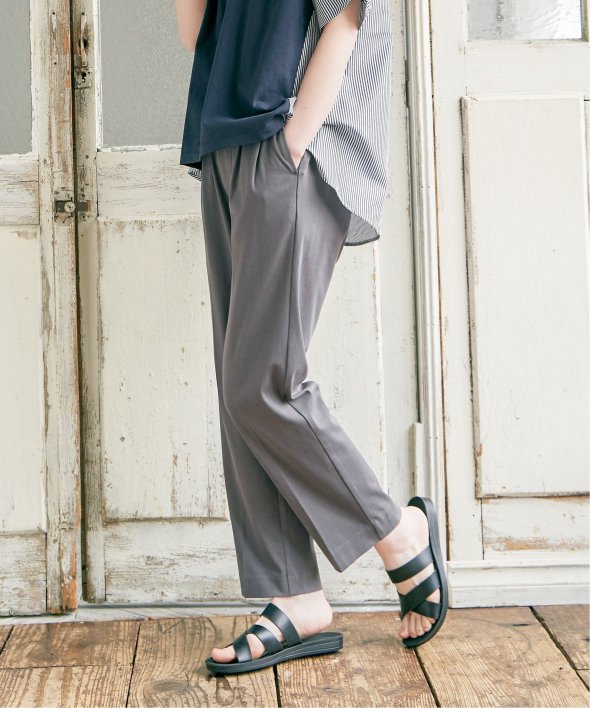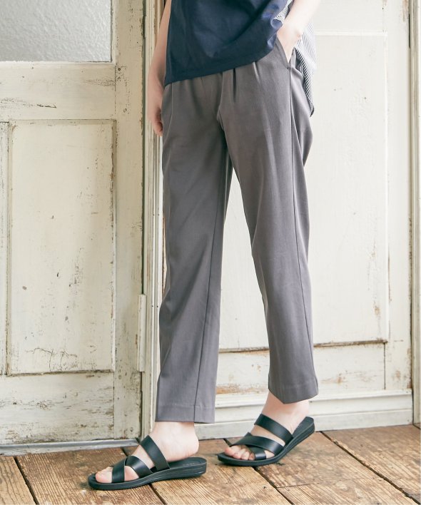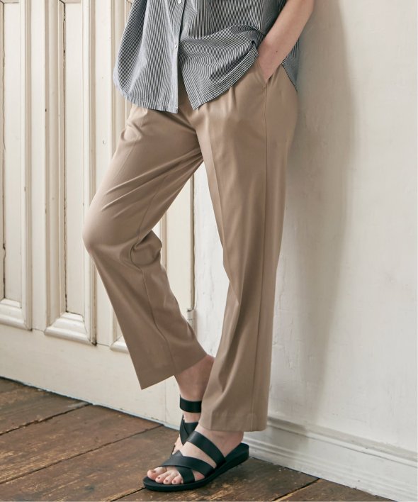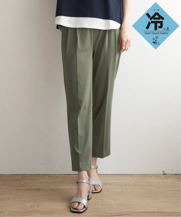 接触冷感の素材を使用した夏にうれしいテーパードパンツ。