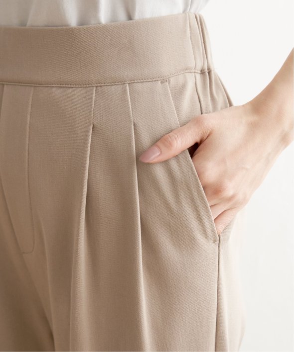 ウエストにタックが入った、ほどよいゆとりのあるテーパードパンツ。