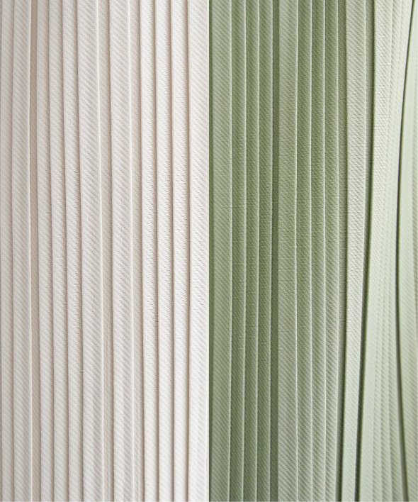 細かく入ったプリーツが縦ラインを強調し、すっきりとした印象に仕上げてくれます。