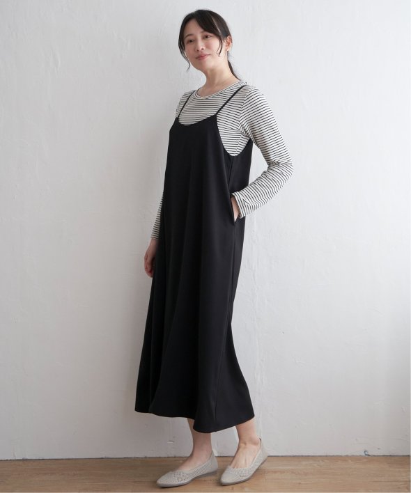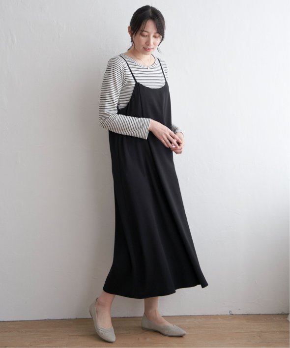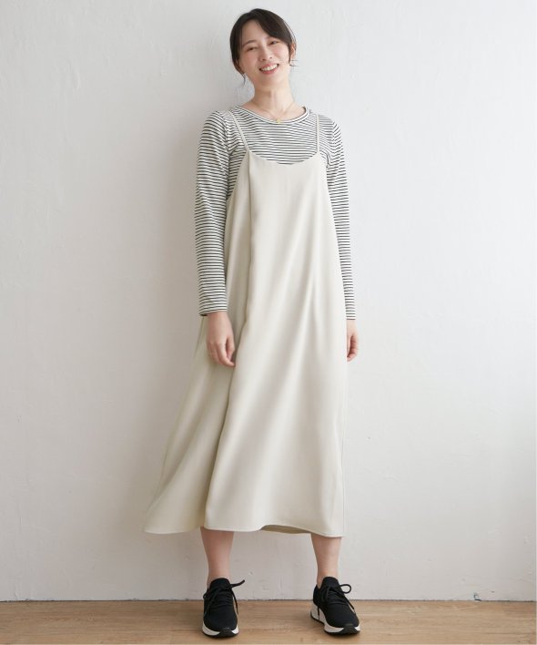 サラサラとした落ち感のある素材を使用したキャミワンピースは、インナーを変えれば長い期間でたのしめます。