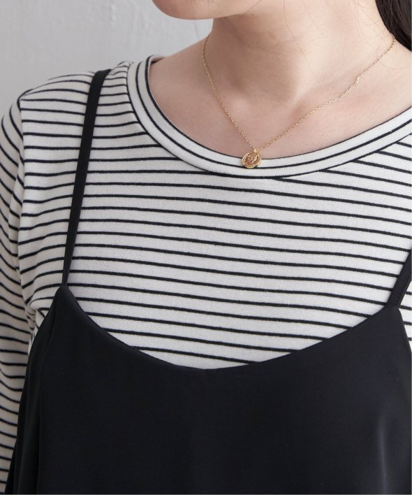 ボーダー柄のインナーが付いたキャミワンピース。