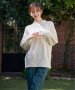 少し毛のふくらみのある、やわらかな手触りのニットは肩から袖口にかけて入ったリブですっきりとした印象に。
