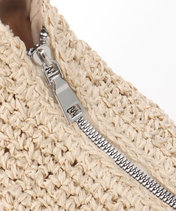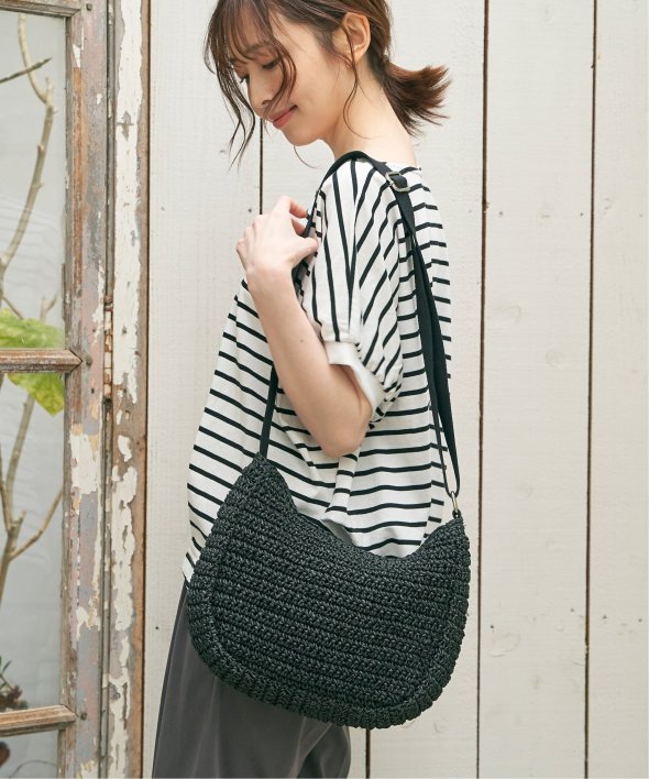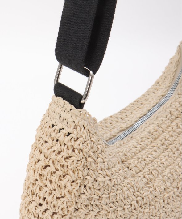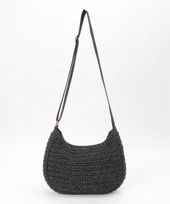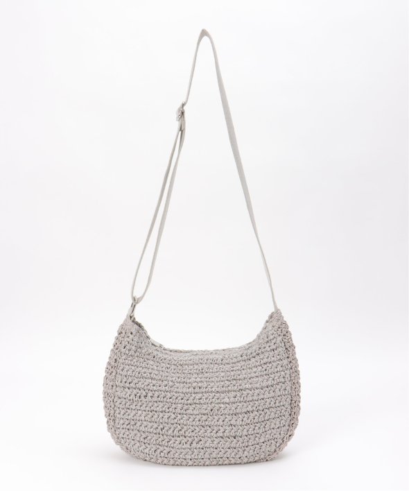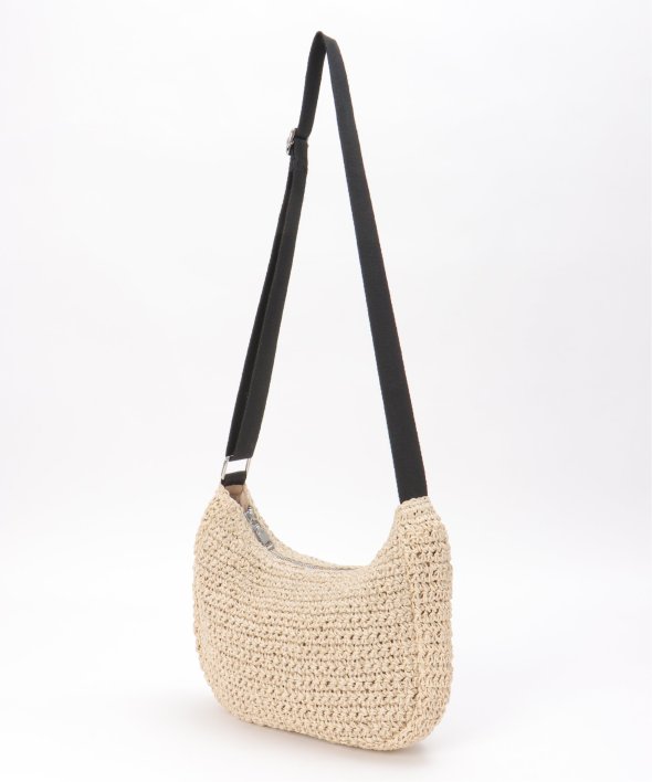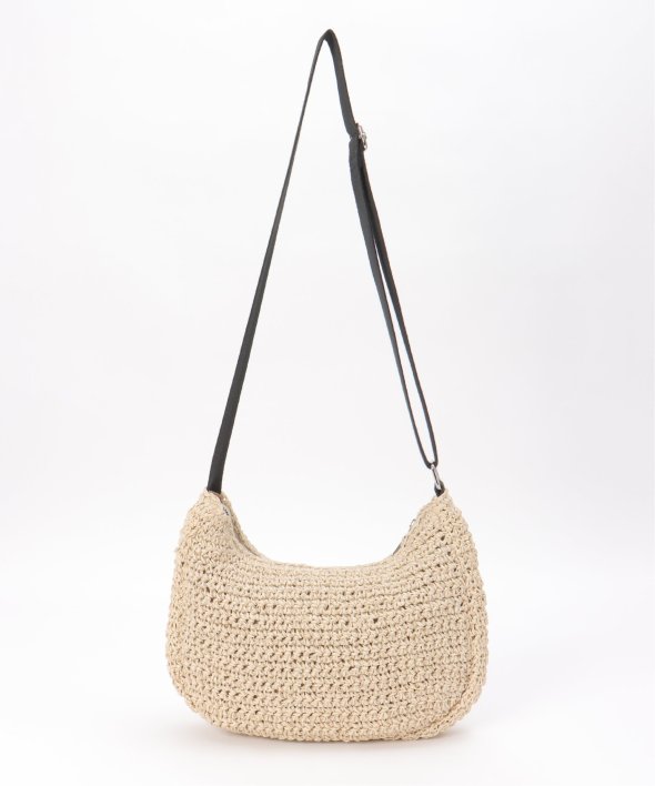 コーディネートに季節感をプラスできる、雑材素材のハーフムーンショルダーバッグ。