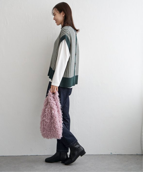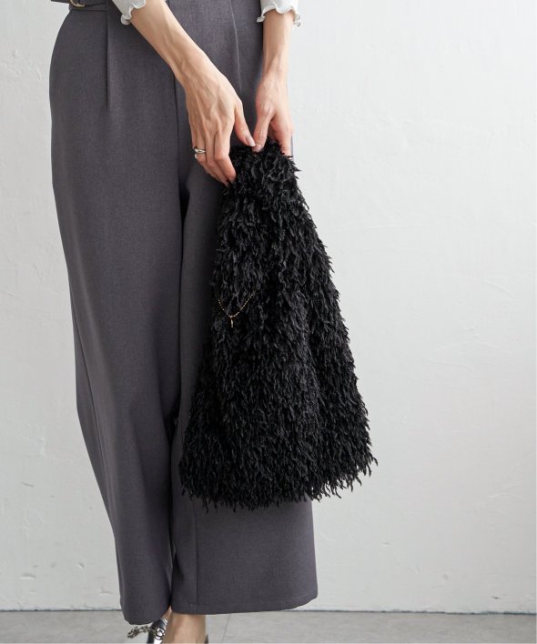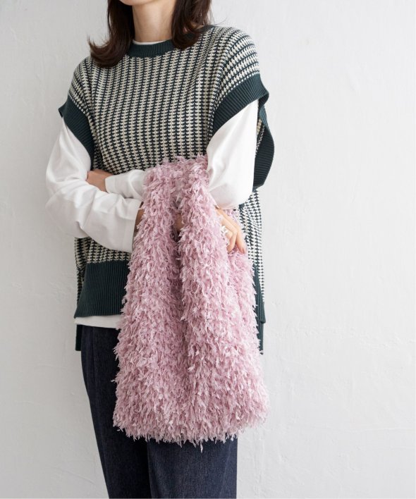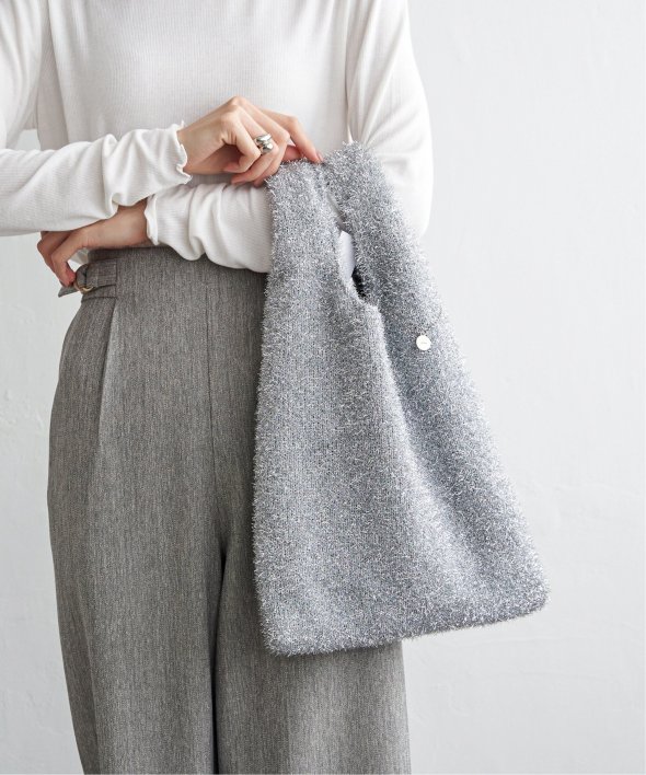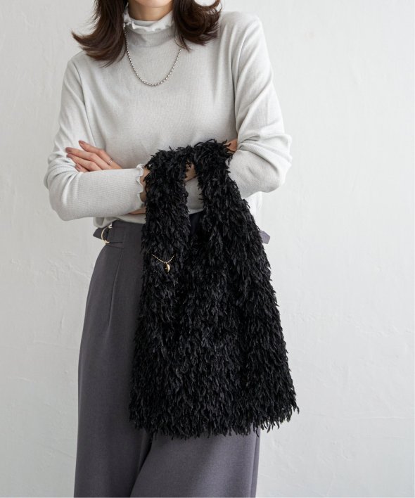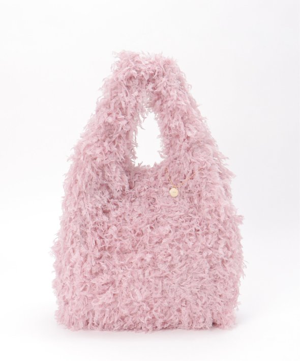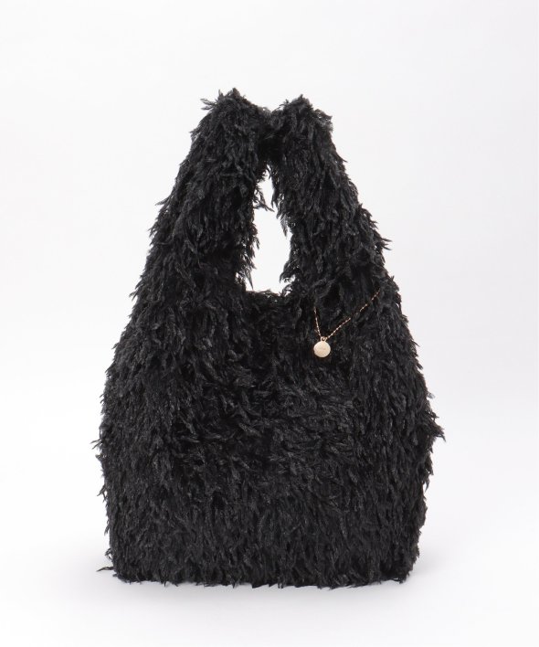 毛足感のあるフェイクファー素材と、やわらかなラメ素材を使用したトートバッグ。