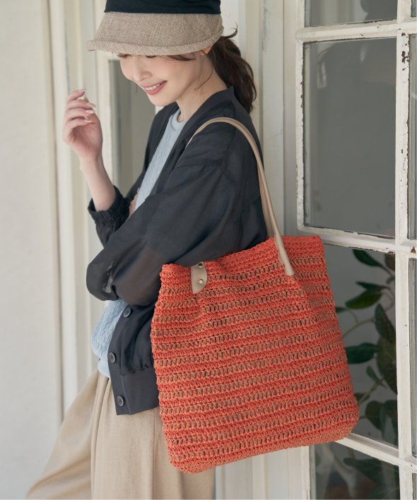 春夏のカジュアルスタイルに合わせたいペーパー素材のトートバッグ。持ち手の異素材切り替えがポイント。肩にかけられ、内ポケットもついており機能的です。【素材】ペーパーとレーヨン糸のコンビ使い。【デザイン】ツマミ持ち手仕様のA4縦長バッグ。【ikkaポイント】・軽量 約410グラム・ペーパーとレーヨン糸を一緒に編込み耐久性アップ・持ち手が長く肩掛けしやすいサイズ感・合皮持ち手に変更し高見え効果当サイトの秋冬物商品の期間限定割引価格につきまして、秋冬物は基本的に4月10日以降は一定期間正価での販売価格に戻させて頂きます。あらかじめご了承くださいませ。