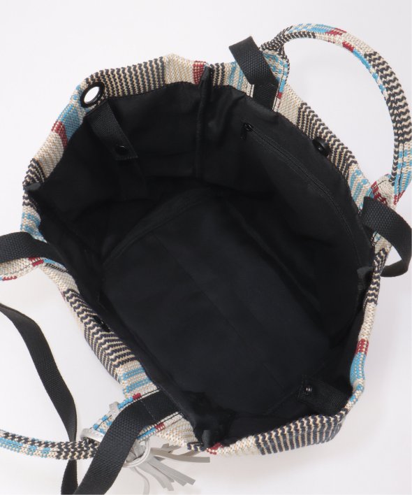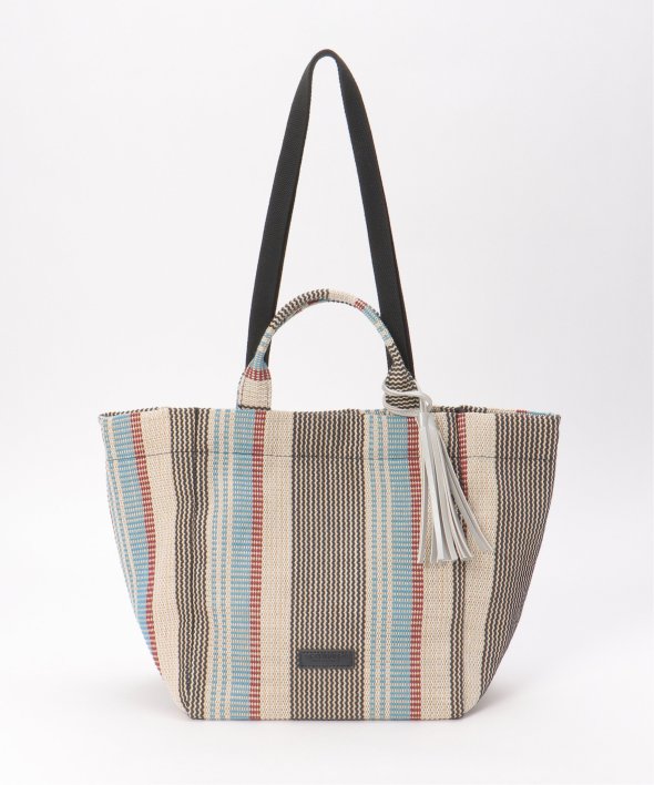 マルチカラーストライプが目を引く、夏らしい表情の雑材シートトートバッグ。