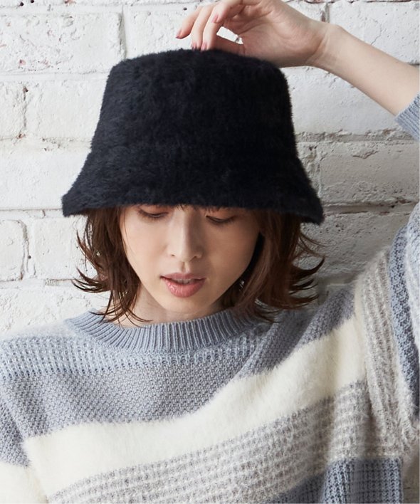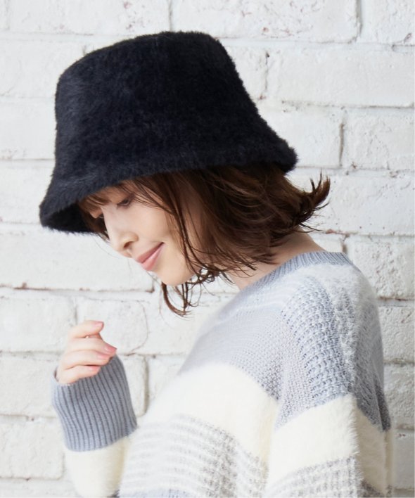 トレンドのシャギーハットは、やや毛を短めにすることで大人っぽく上品な印象に仕上げました。