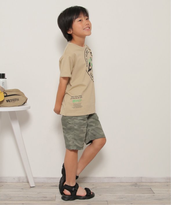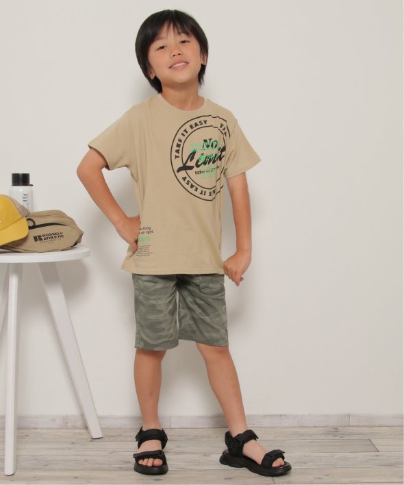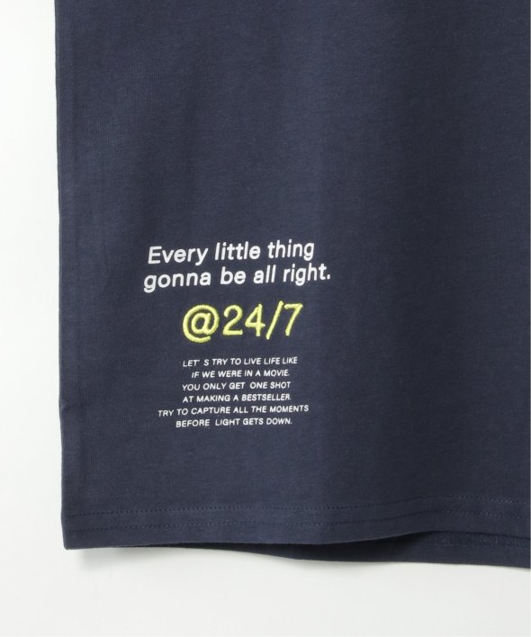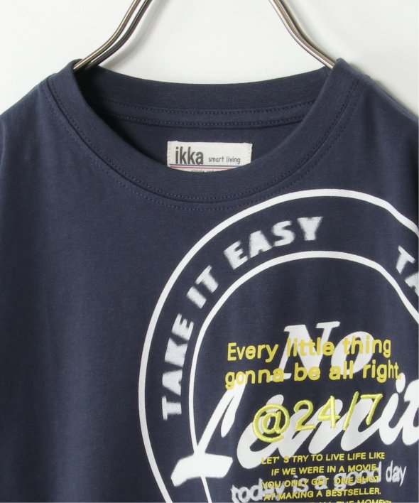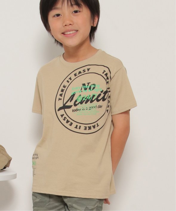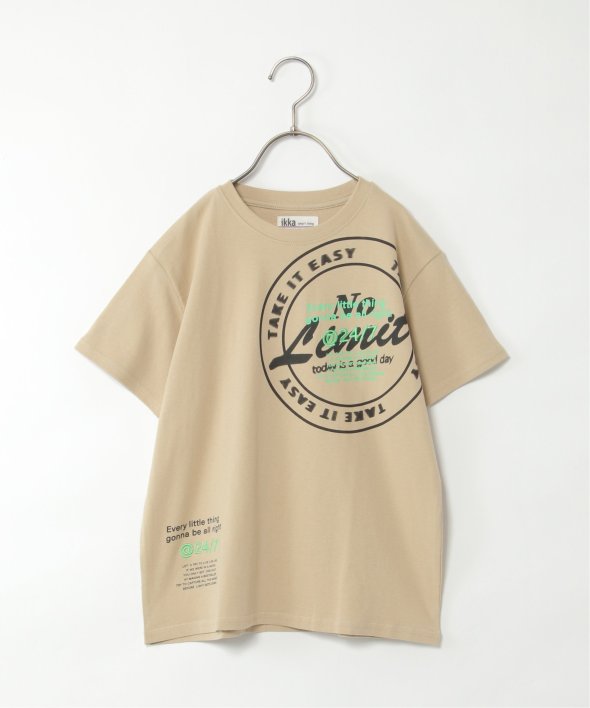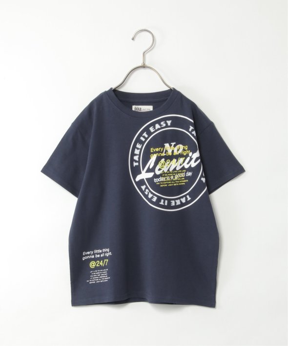 胸に大胆なサークルロゴをあしらったTシャツ。