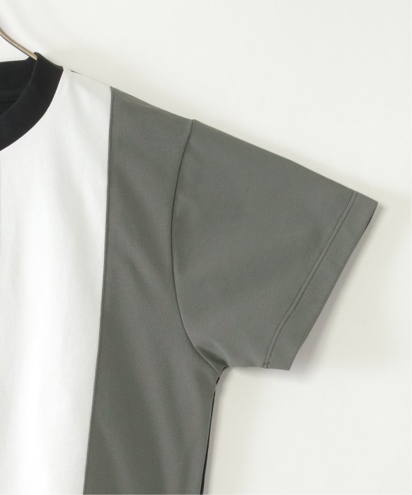 大胆な縦3段の配色切り替えが目を引く、ちょっぴり個性派のTシャツ。