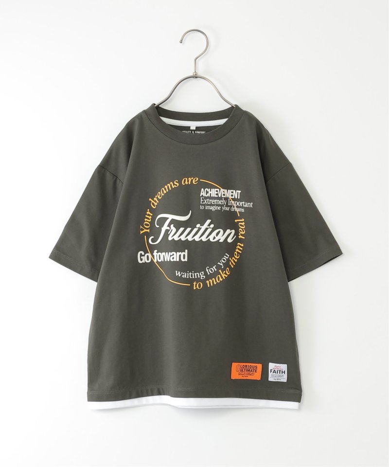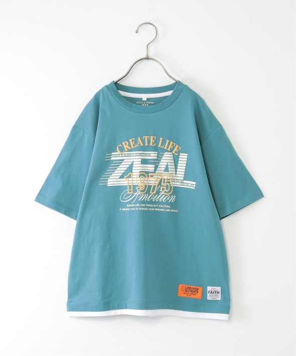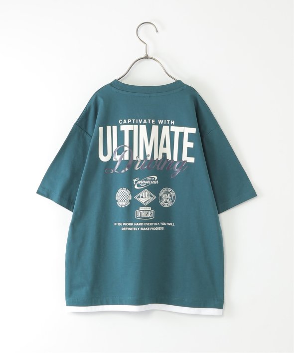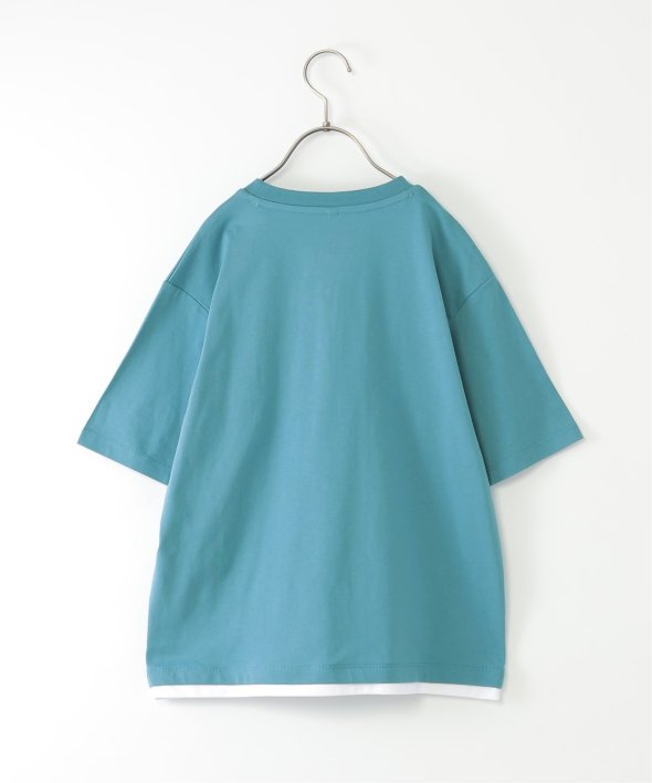 インナーを重ね着しているように見える、裾レイヤードデザインがポイントのプリントTシャツ。