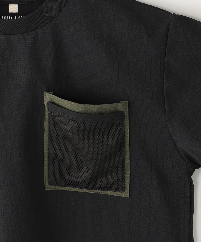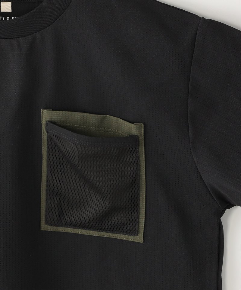 カットソーとメッシュ、2素材のダブルポケット。