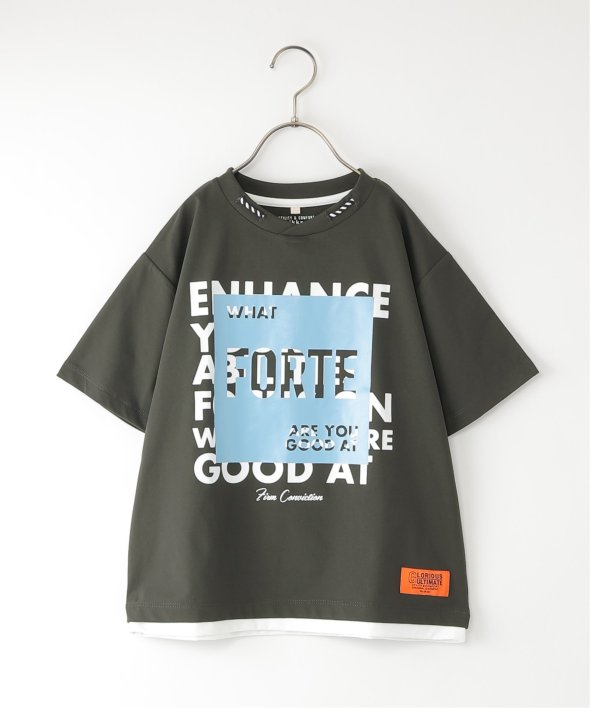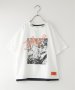 レイヤードデザインにロゴやフォトプリントを施したデザインTシャツ。
