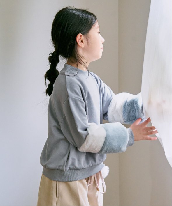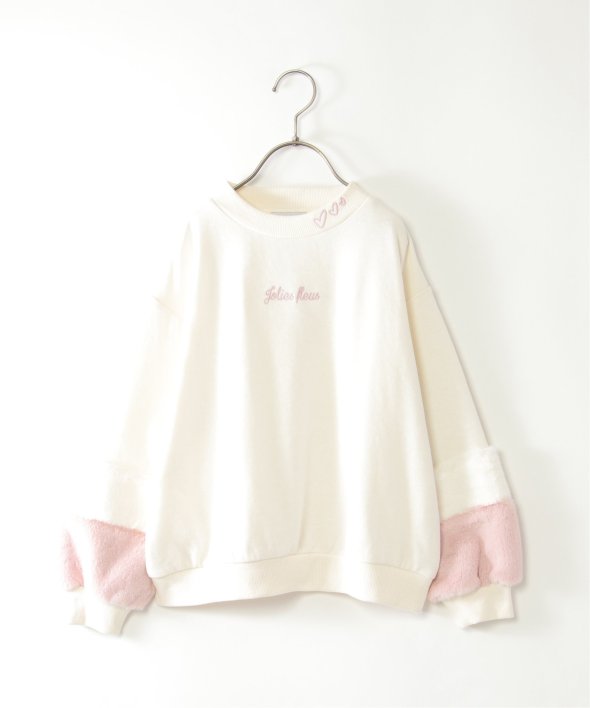 袖のフェイクファーとフロントの刺繍がポイントのプルオーバー。ネックのハート刺繍も魅力です。【素材】裏毛×ファータッチの素材。【デザイン】袖の配色切り替えとネック刺繍がアクセントです。【ikkaポイント】昨年大好評のアイテム!ファータッチ素材の配色を一部見直し、ジュニア年代のお子さまにも全色可愛く・着やすく進化させました。